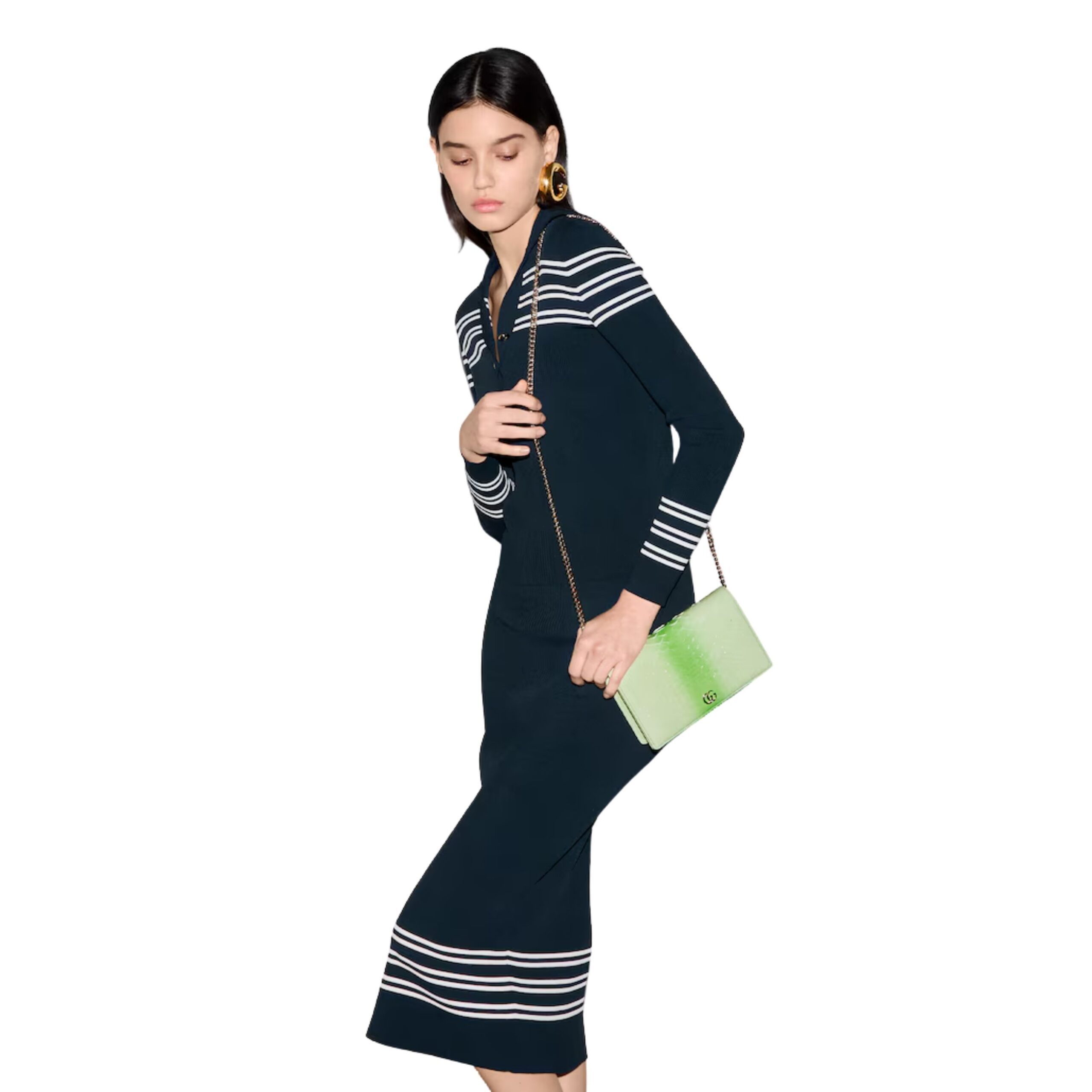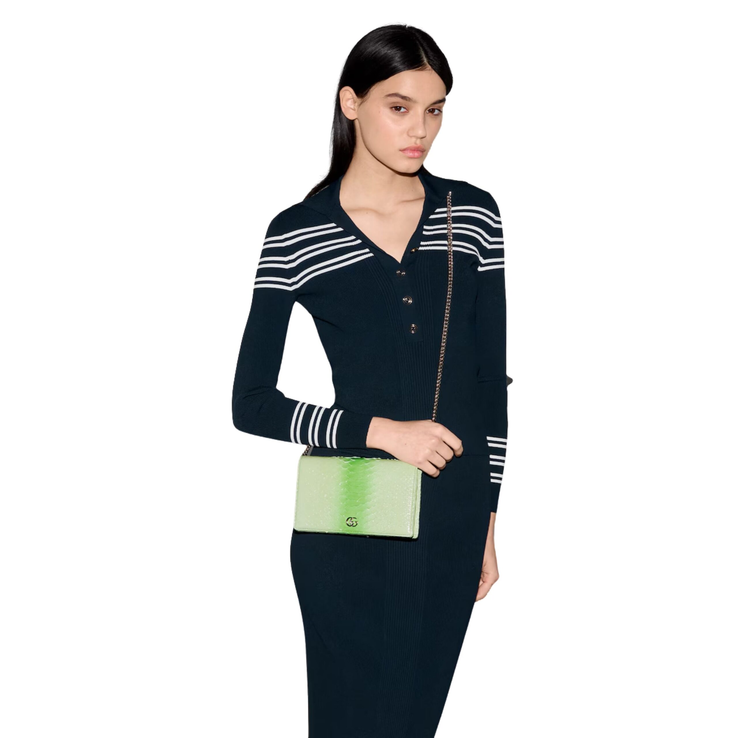 Perfect for fashion-forward women who value both luxury and practicality, this wallet-on-chain embodies modern elegance and functional design. Whether worn as a statement accessory or used as a versatile everyday essential, it’s a true symbol of refined taste. Invest in this exquisite piece to bring an air of Italian craftsmanship, timeless style, and contemporary flair to your wardrobe. The GG Marmont Python Wallet on Chain is more than an accessory—it’s a bold expression of individuality and luxury.
