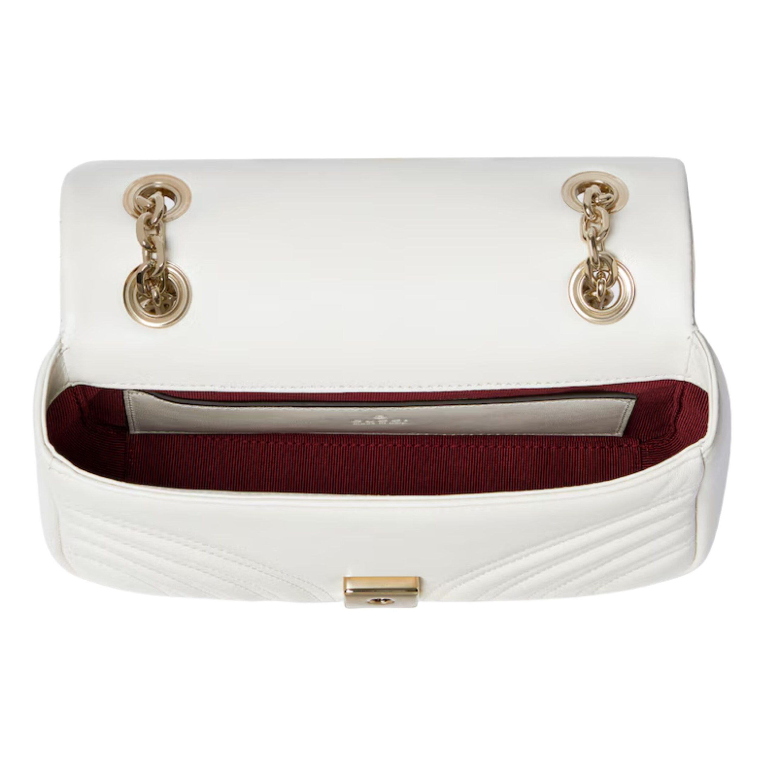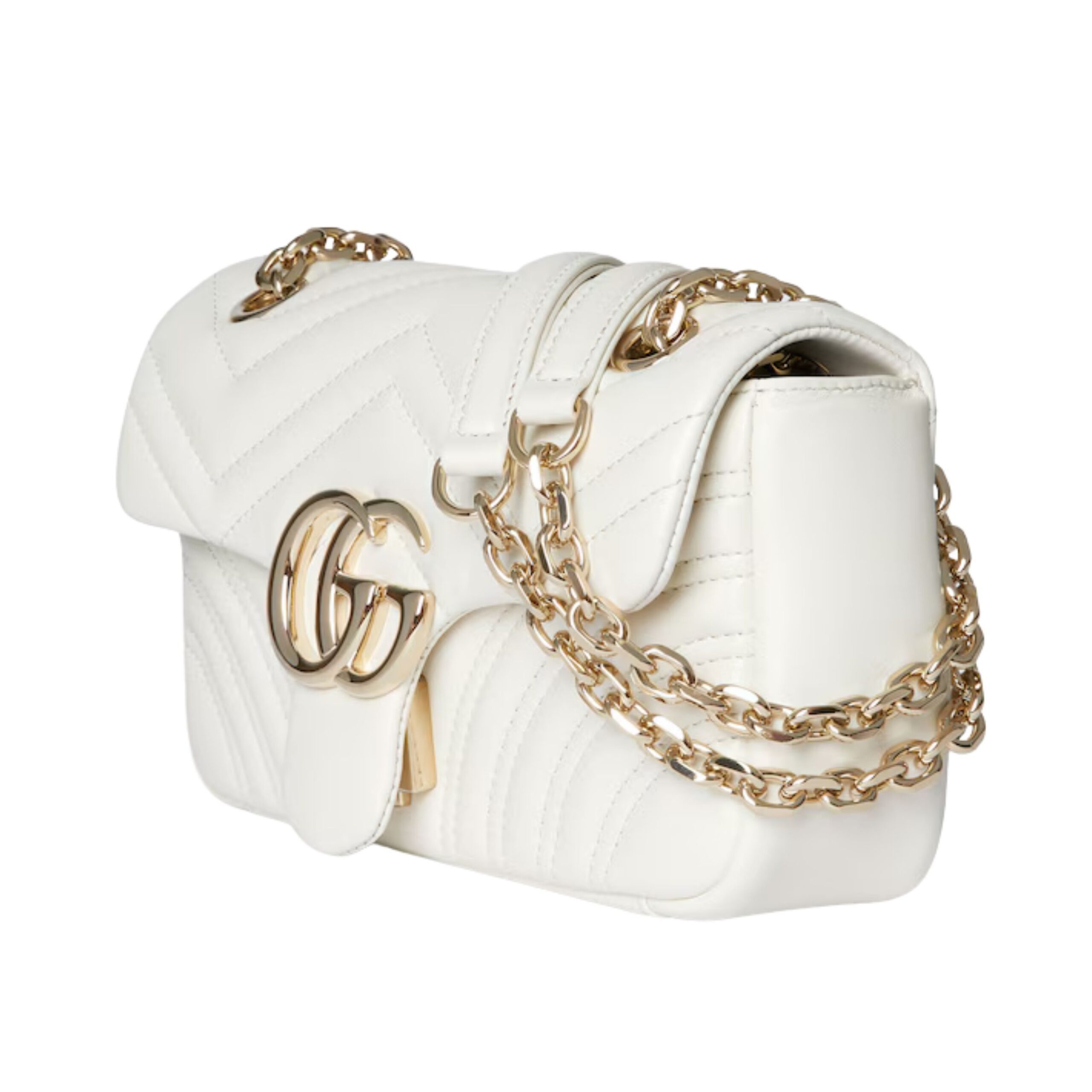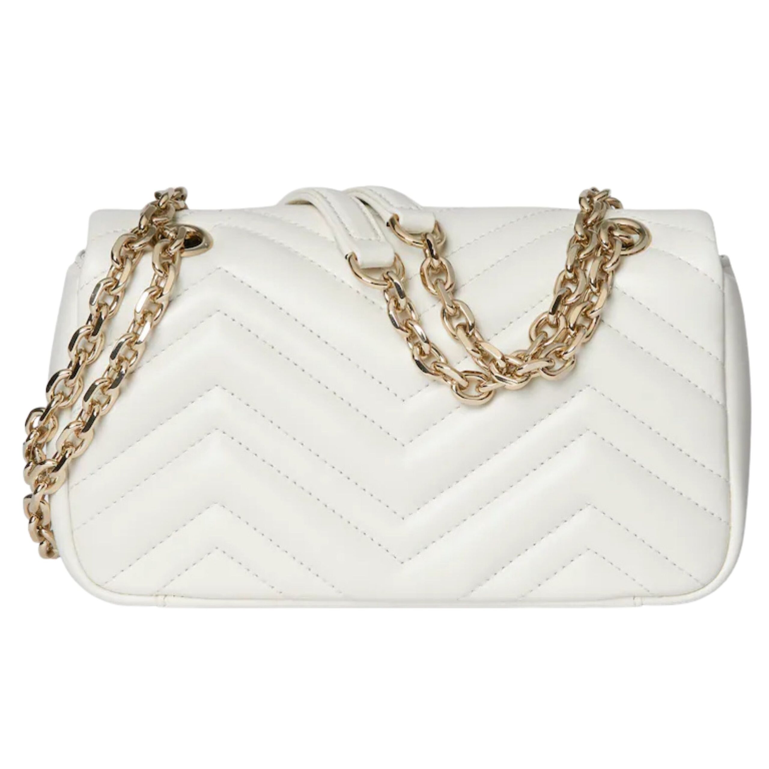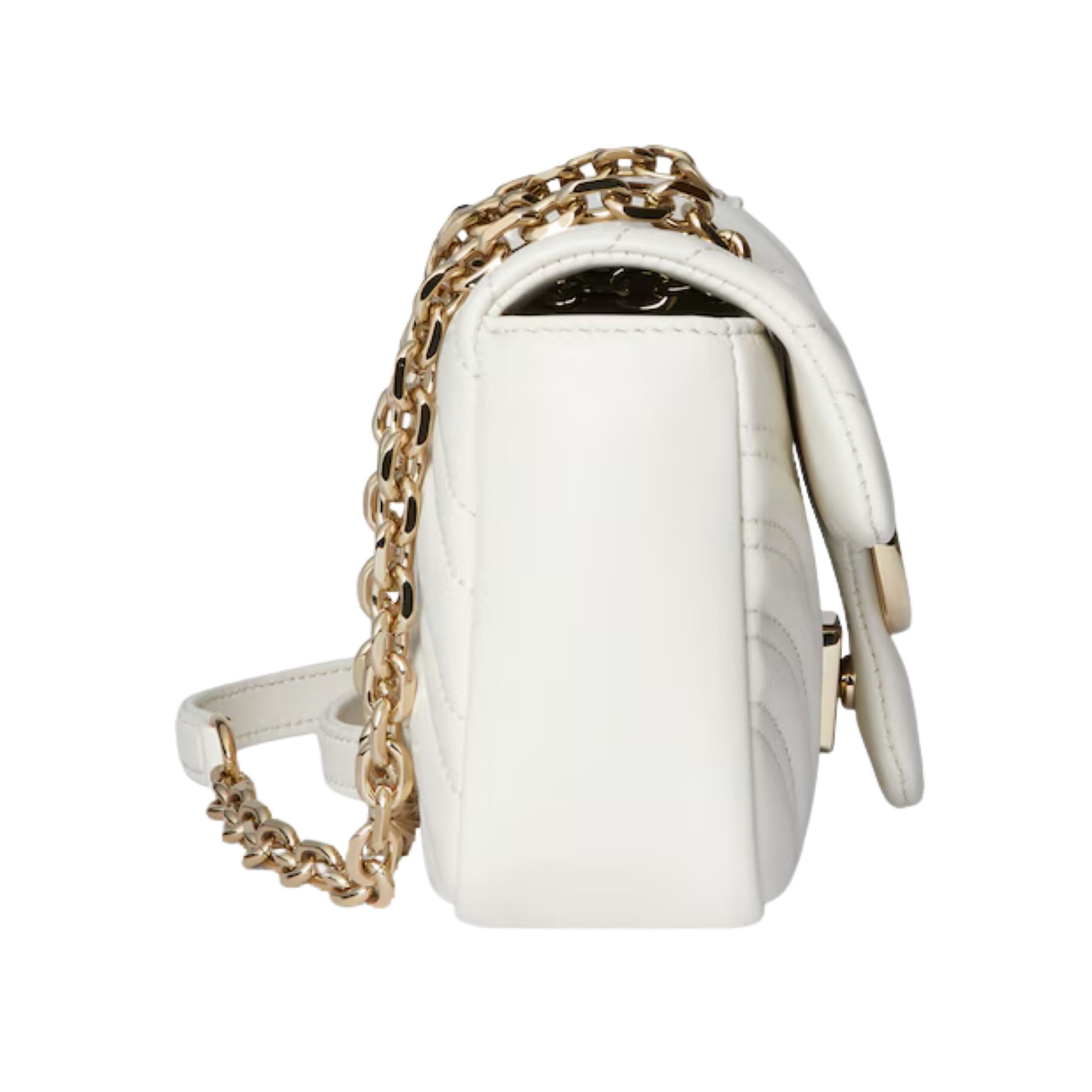 Every detail of this luxury piece reflects Gucci’s dedication to quality and timeless design. The soft matelassé leather is quilted in a chevron pattern, giving it a distinctive, textured look that feels both contemporary and classic. Its lightweight construction and elegant proportions make it a favorite for both casual outings and formal occasions.