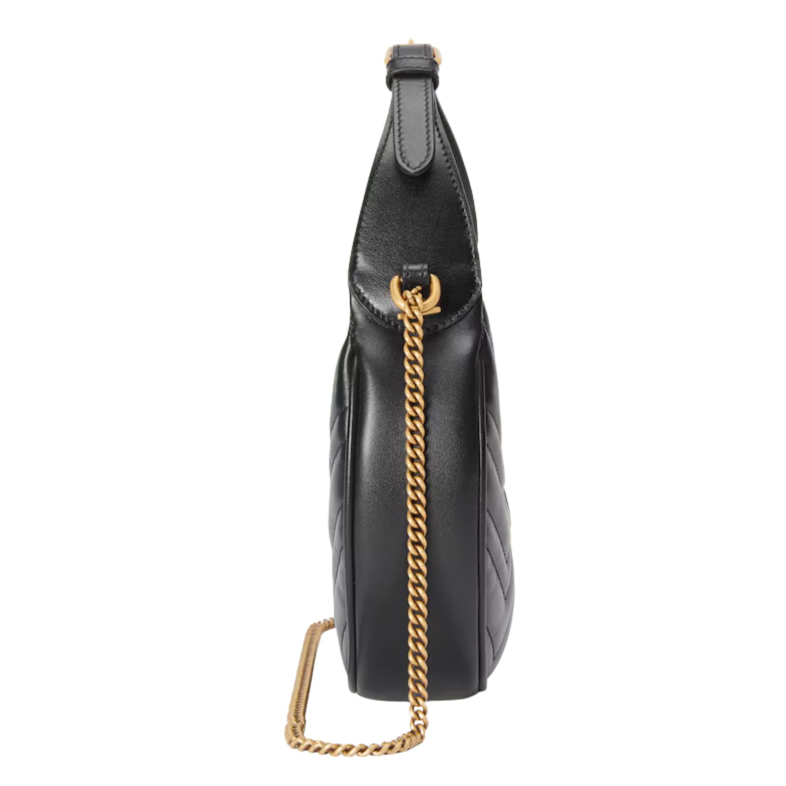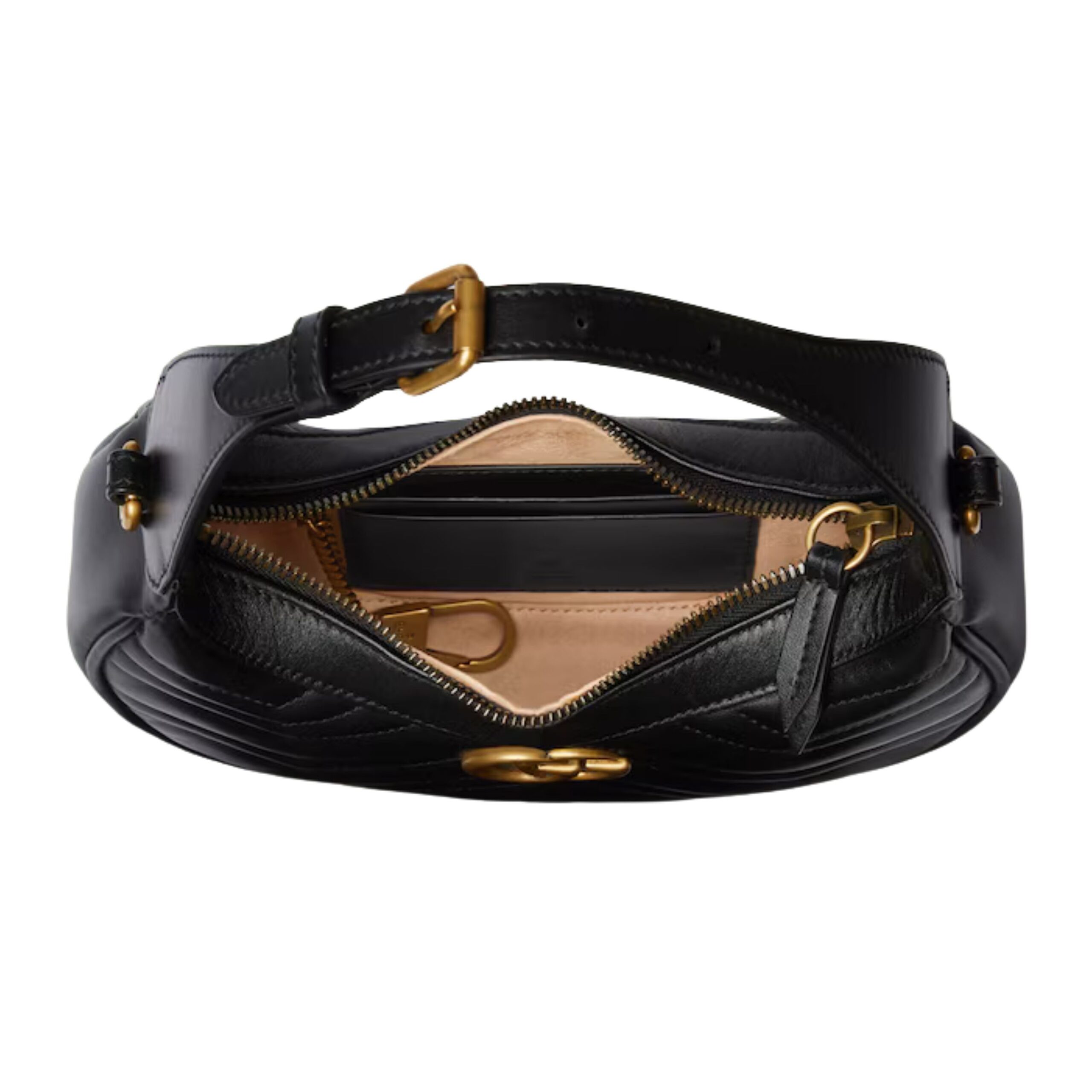 Every detail of this luxury piece reflects Gucci’s dedication to quality and timeless design. The soft matelassé leather is quilted in a chevron pattern, giving it a distinctive, textured look that feels both contemporary and classic. Its lightweight construction and elegant proportions make it a favorite for both casual outings and formal occasions.