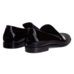 These sleek black patent leather Giuseppe Zanotti Eflamm Velvet Shoes exude sophistication and timeless style. The glossy patent leather finish adds a modern touch, while the gold-tone metal logo accessory on the front provides a luxurious contrast. The loafers feature a leather lining for comfort and breathability, ensuring a perfect fit for all-day wear.