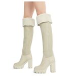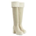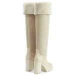 These knee-length Giuseppe Zanotti Feridha Shoes are crafted from luxurious off-white leather, complemented by soft off-white shearling for added warmth and texture.