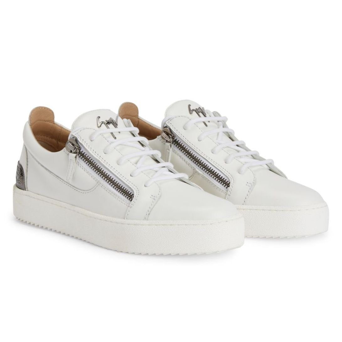 Elevate your footwear collection with these men’s low-top leather lace-up Giuseppe Zanotti Frankie Shoes, crafted in Italy for a sophisticated and contemporary look. Made from premium white leather, they feature sleek gunmetal embellishments that add an industrial yet refined edge.