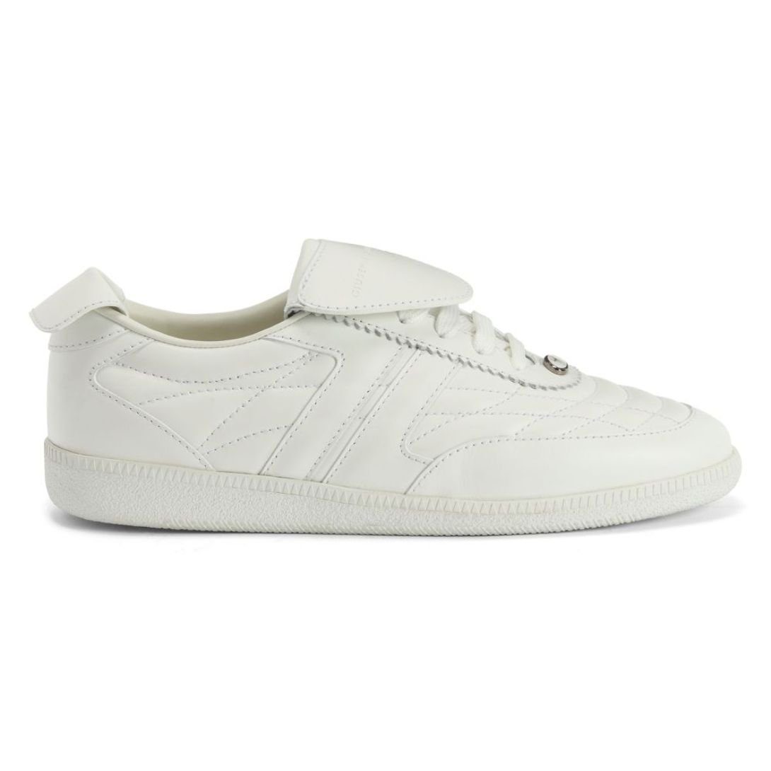 Step into minimalist sophistication with these low-top lace-up Giuseppe Zanotti Gz League Shoes, designed for modern versatility. Featuring a sleek white leather upper, a large tongue with a hot-stamped logo, and subtle gunmetal grey and white metal accents, these sneakers offer a clean and contemporary look. The durable rubber sole completes the design with practical comfort.