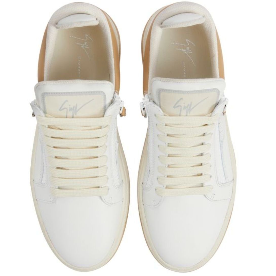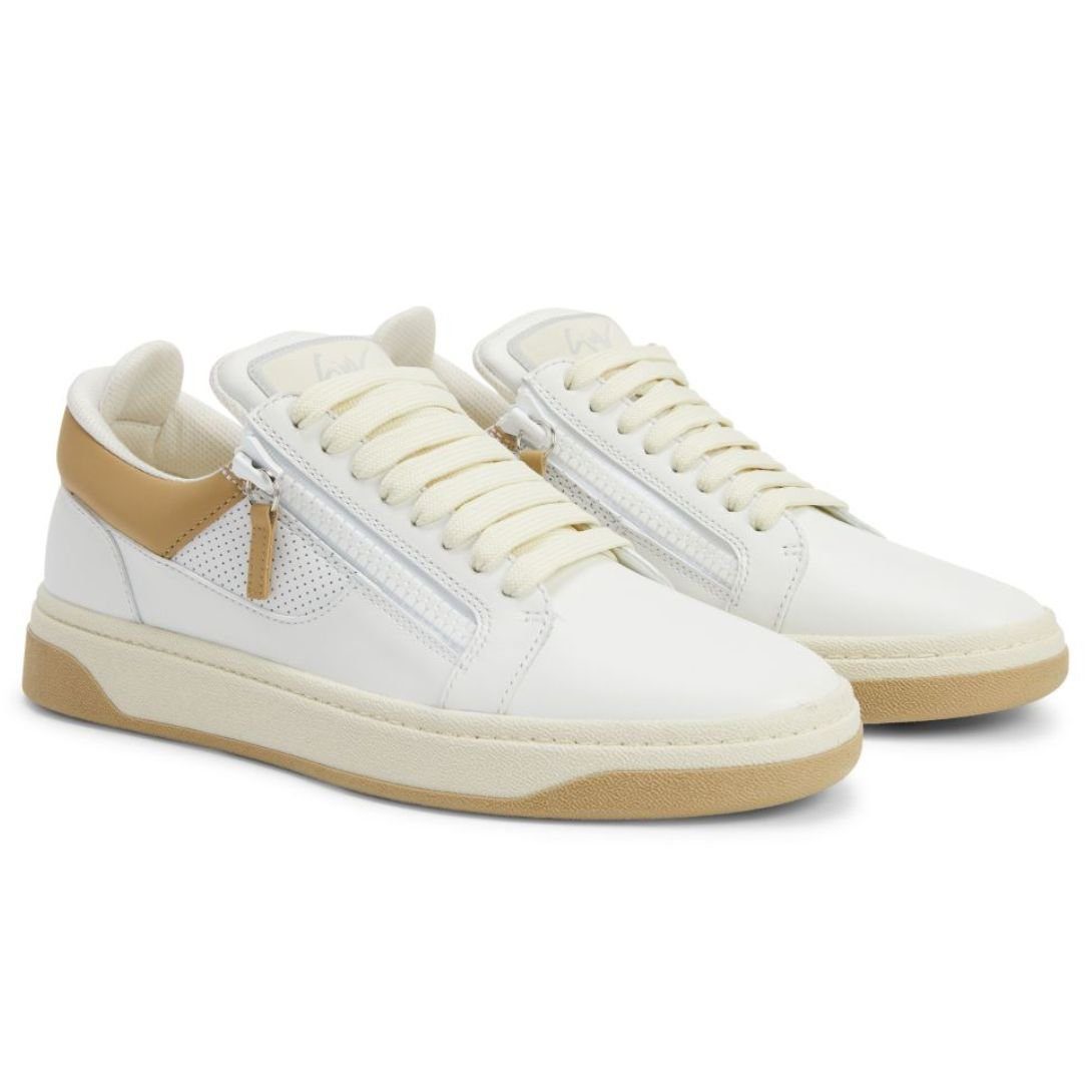 These low-top lace-up Giuseppe Zanotti Gz94 Shoes are crafted from a blend of beige and white leather, enhanced with white perforated-effect leather for a stylish and breathable design.