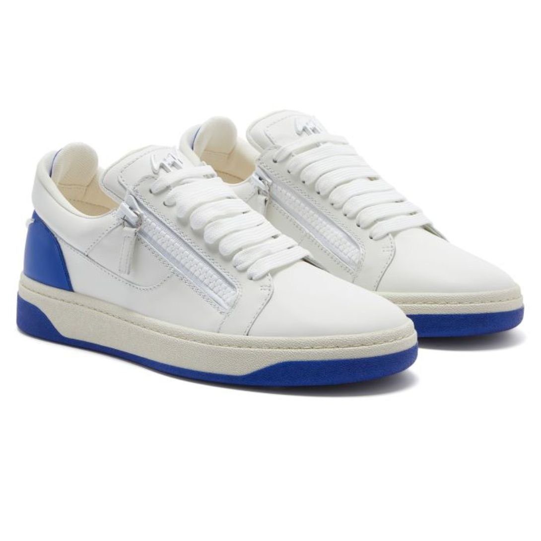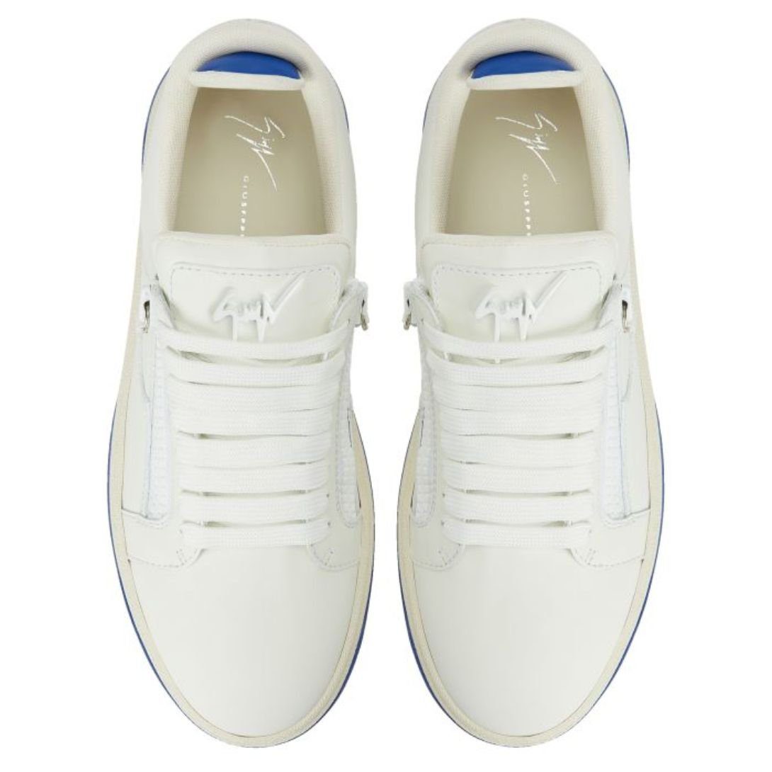 Crafted from a combination of white and cornflower blue leather, these low-top Giuseppe Zanotti Gz94 Shoes offer a fresh and vibrant design, ideal for modern style enthusiasts.