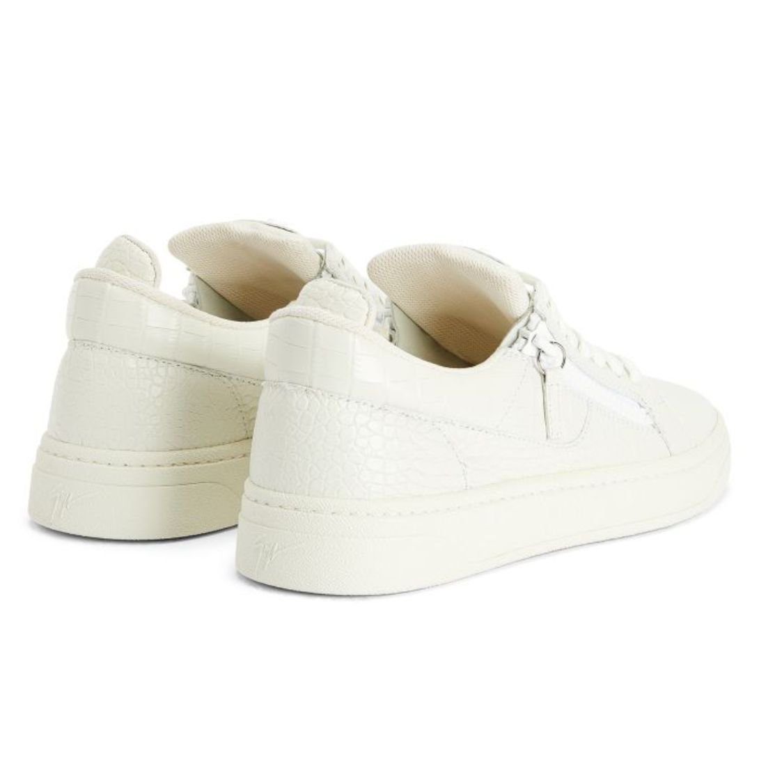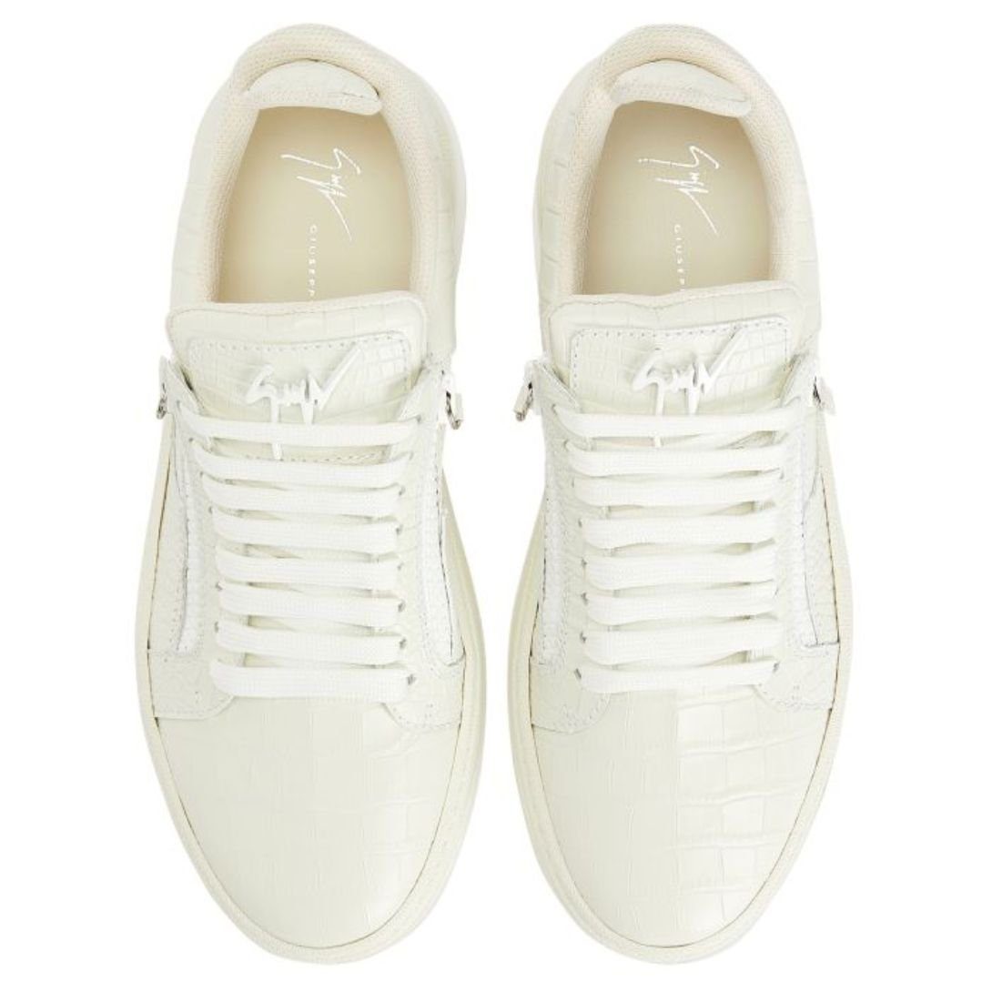 Expertly crafted from white crocodile-print leather, these low-top Giuseppe Zanotti Gz94 Shoes embody sophistication and elegance, offering a bold yet versatile design.