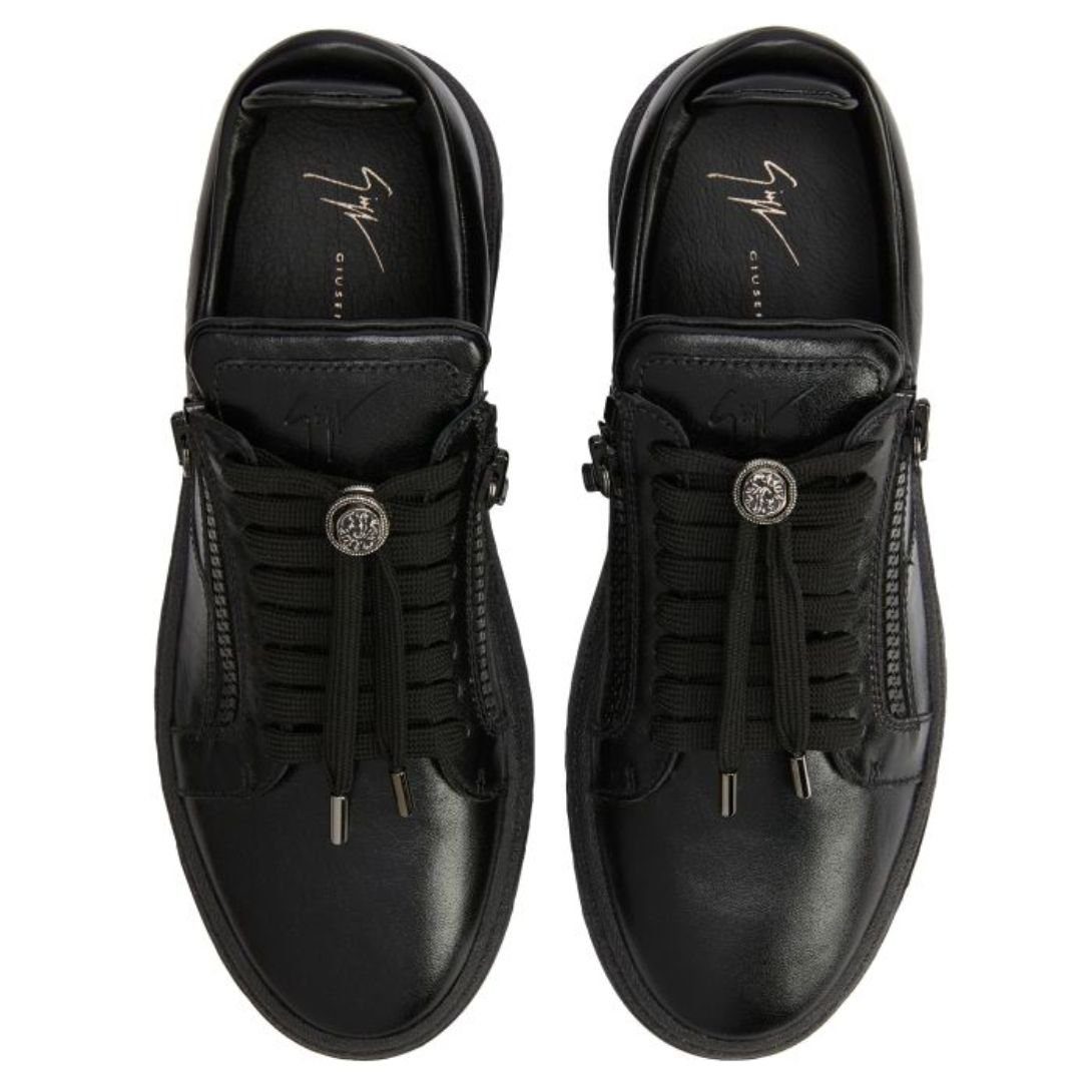 Crafted in premium Italian black leather, these low-top Giuseppe Zanotti Gz94 Shoes blend style and functionality seamlessly. Designed for modern versatility, they feature a sleek and sophisticated look ideal for any occasion.