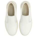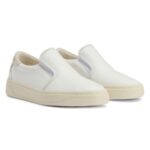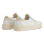 These slip-on Giuseppe Zanotti Gz94 Shoes, crafted from premium off-white leather, feature a sleek and minimalist design. The engraved gunmetal grey applique on the back of the upper adds a modern and stylish accent, creating a subtle contrast that elevates their elegance.