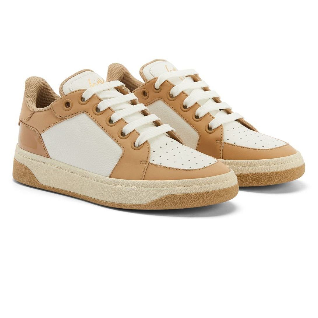 Made in Italy, these sneakers embody premium craftsmanship and attention to detail. The blend of white and beige hues, along with golden accents, creates a versatile and elegant footwear option suitable for a variety of occasions.