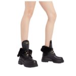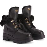 These lace-up ankle boots combine sleek leather, luxurious golden hardware, and a warm faux fur lining, making them a chic and comfortable addition to any wardrobe.
