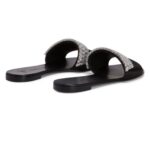 The matte black leather sole adds understated sophistication to the overall design. A subtle logo imprint reflects the sandals’ premium quality and craftsmanship.