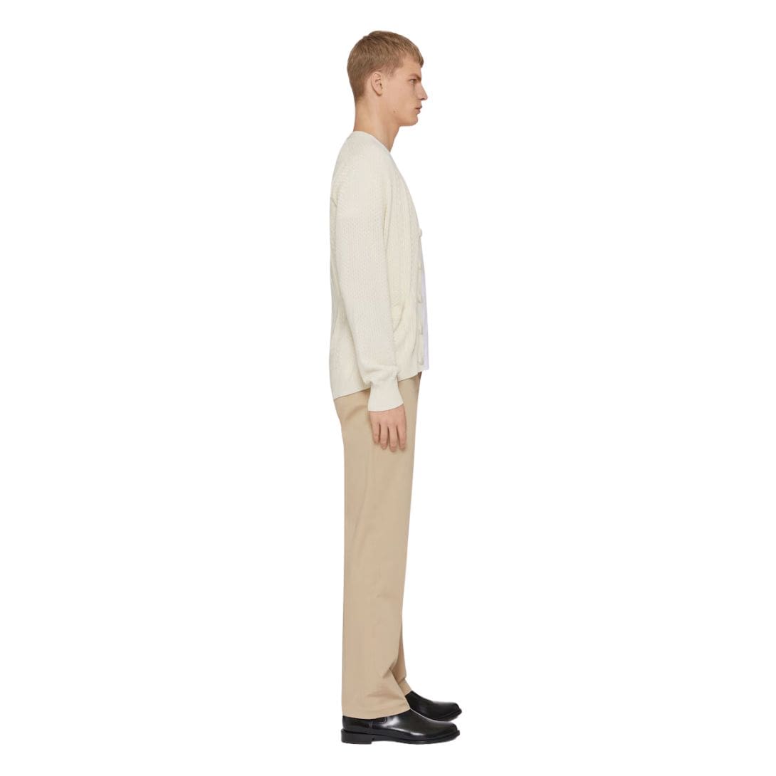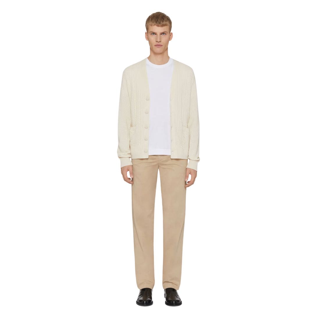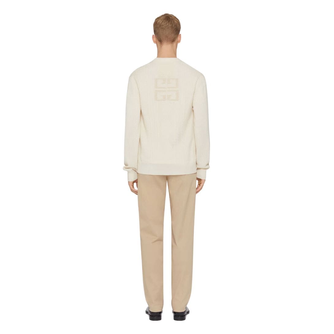 This cardigan features a relaxed, yet tailored fit, providing both comfort and a refined silhouette. The deep V-neckline is adorned with a button-down closure, allowing for versatile styling options. Whether worn open over a crisp shirt or buttoned up for a more polished look, it seamlessly adapts to various occasions. The buttons are meticulously crafted, often showcasing the Givenchy logo, adding a hint of opulence. GIVENCHY 4G CABLE KNIT CARDIGAN