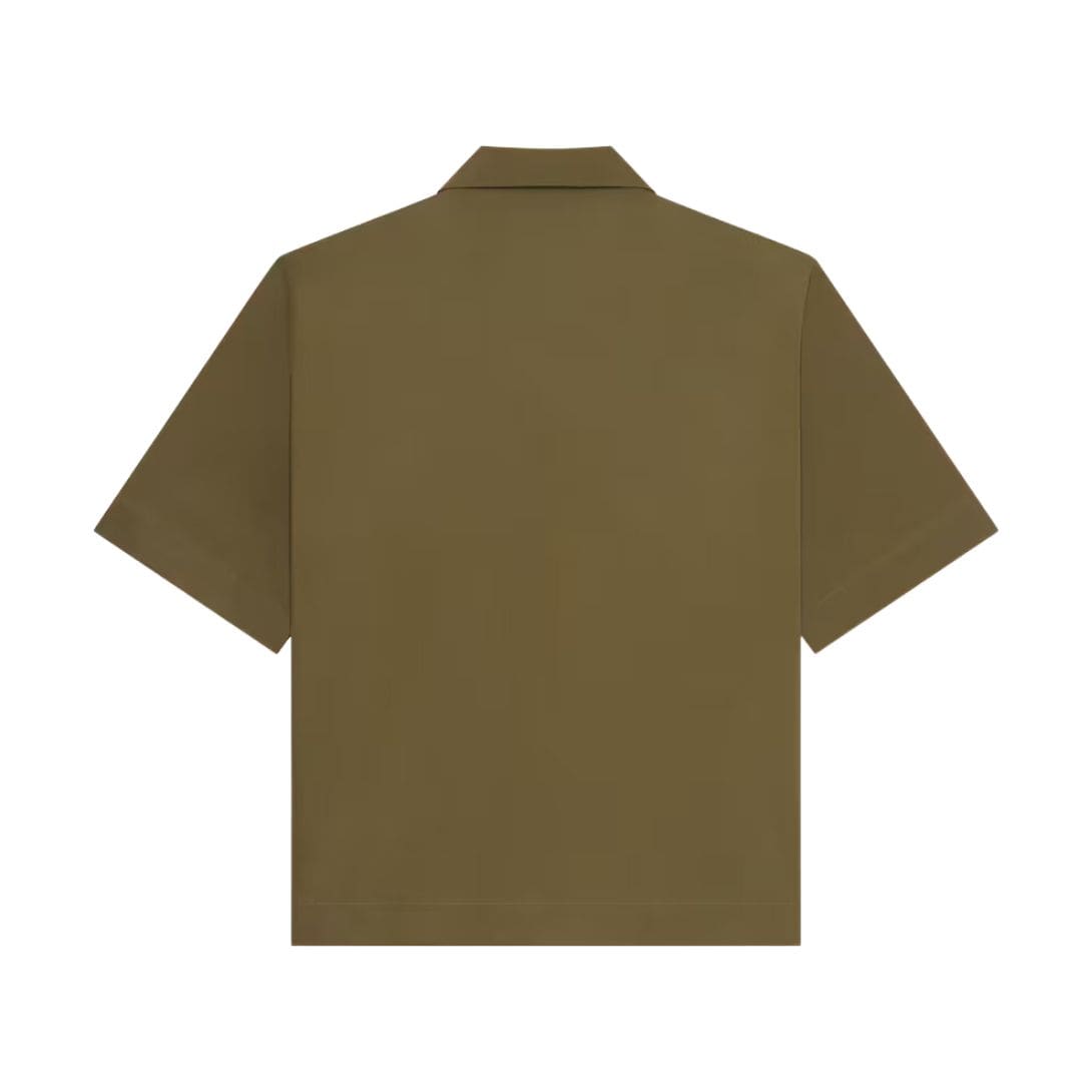 The shirt features a boxy, oversized fit that provides a modern silhouette while ensuring comfort and ease of movement. This design choice accentuates a relaxed, nonchalant style, making it a versatile piece that pairs effortlessly with a variety of bottoms, from tailored shorts to casual chinos.
