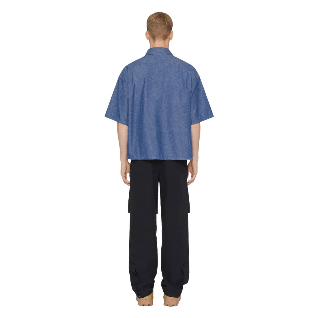 The **GIVENCHY Overshirt** also includes two chest pockets, enhancing its practical appeal and offering convenient storage for small essentials. These pockets are finished with sleek flaps, maintaining the shirt’s clean and polished appearance. The cuffs are adjustable, allowing for a personalized fit and the option to roll up the sleeves for a more relaxed look. GIVENCHY OVERSHIRT IN DENIM CHAMBRAY