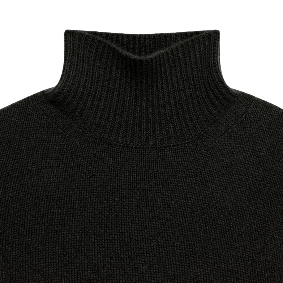 The turtleneck is a standout feature, providing both warmth and a polished touch. Its high, plush collar can be styled in various ways, from a snug, close-fitting finish to a relaxed, folded-over look. The subtle ribbing at the cuffs and hem adds a refined texture, ensuring that the sweater retains its shape and provides a snug fit without compromising on comfort.