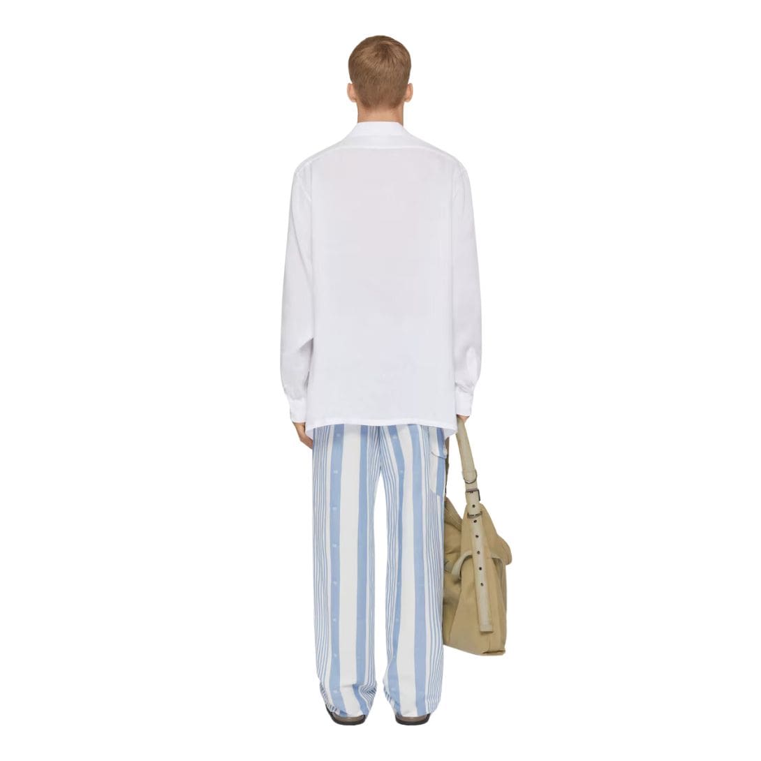 The shirt features a classic button-down design, with a neatly tailored collar that maintains its structure while allowing for versatile styling. Its long sleeves end in buttoned cuffs, which can be rolled up for a more laid-back look or kept buttoned for a polished appearance. The front is adorned with a row of buttons that perfectly complement the shirt’s clean lines and understated elegance. GIVENCHY SHIRT IN LINEN