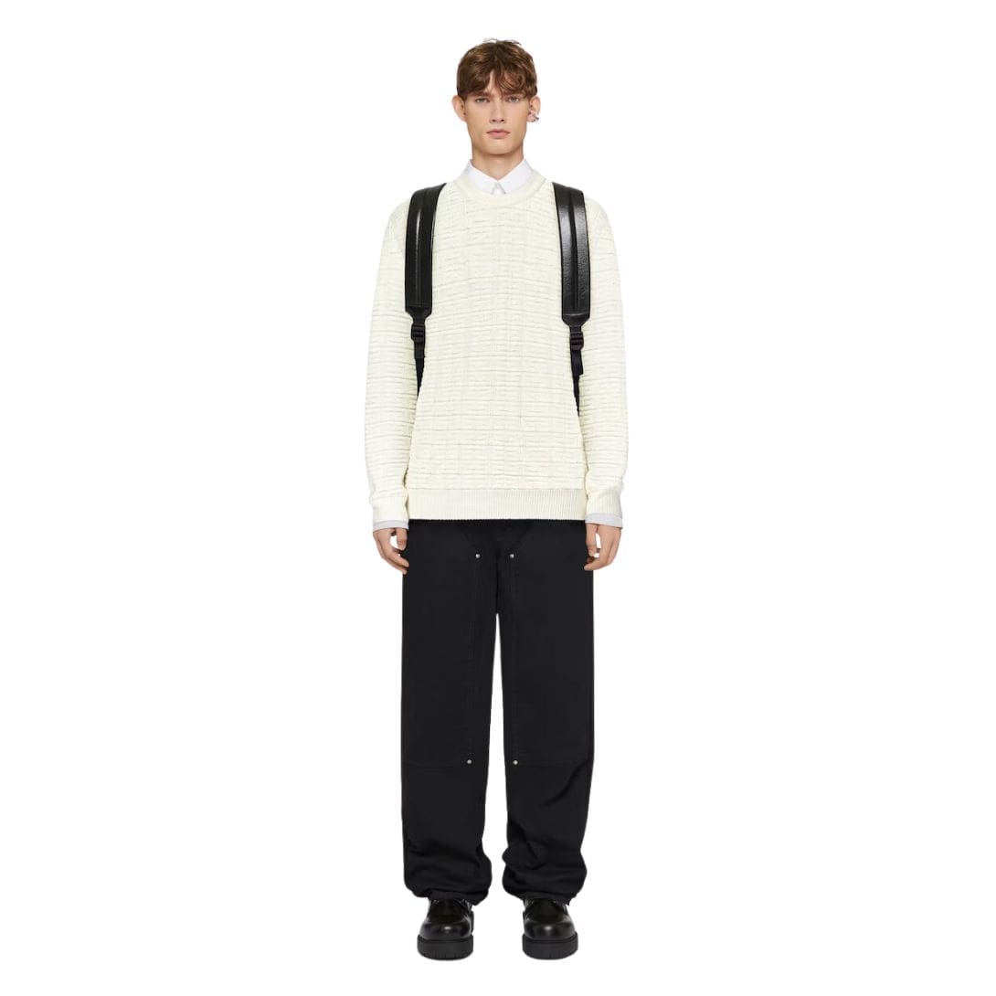 The design of the sweater features the iconic 4G logo, an emblem of Givenchy’s legacy, subtly integrated into the fabric through intricate jacquard weaving techniques. The logo’s geometric pattern is both eye-catching and sophisticated, adding a touch of modernity while paying homage to the brand’s heritage. The use of monochromatic tones enhances the versatility of the sweater, allowing it to be effortlessly paired with various outfits, whether for a casual day out or a more formal occasion. GIVENCHY SWEATER IN 4G WOOL