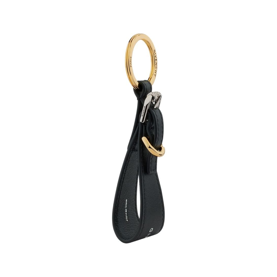 In summary, the Givenchy Keyring in black tumbled calfskin leather with golden and silvery finish metal buckles and hoop is a stylish and practical accessory for the modern individual. Elevate your style with this luxurious keyring, expertly crafted to meet the highest standards of quality and design.