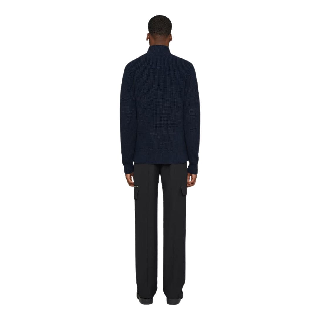This cardigan features a sleek, contemporary design, characterized by its streamlined silhouette and clean lines. The front is adorned with a full-length zipper, adding a functional and stylish element to the piece. The zipper, finished in a subtle metallic tone, offers a sophisticated contrast to the rich texture of the wool and cashmere blend. It allows for versatile styling options, enabling you to wear the cardigan open for a relaxed look or zipped up for a more polished appearance.
