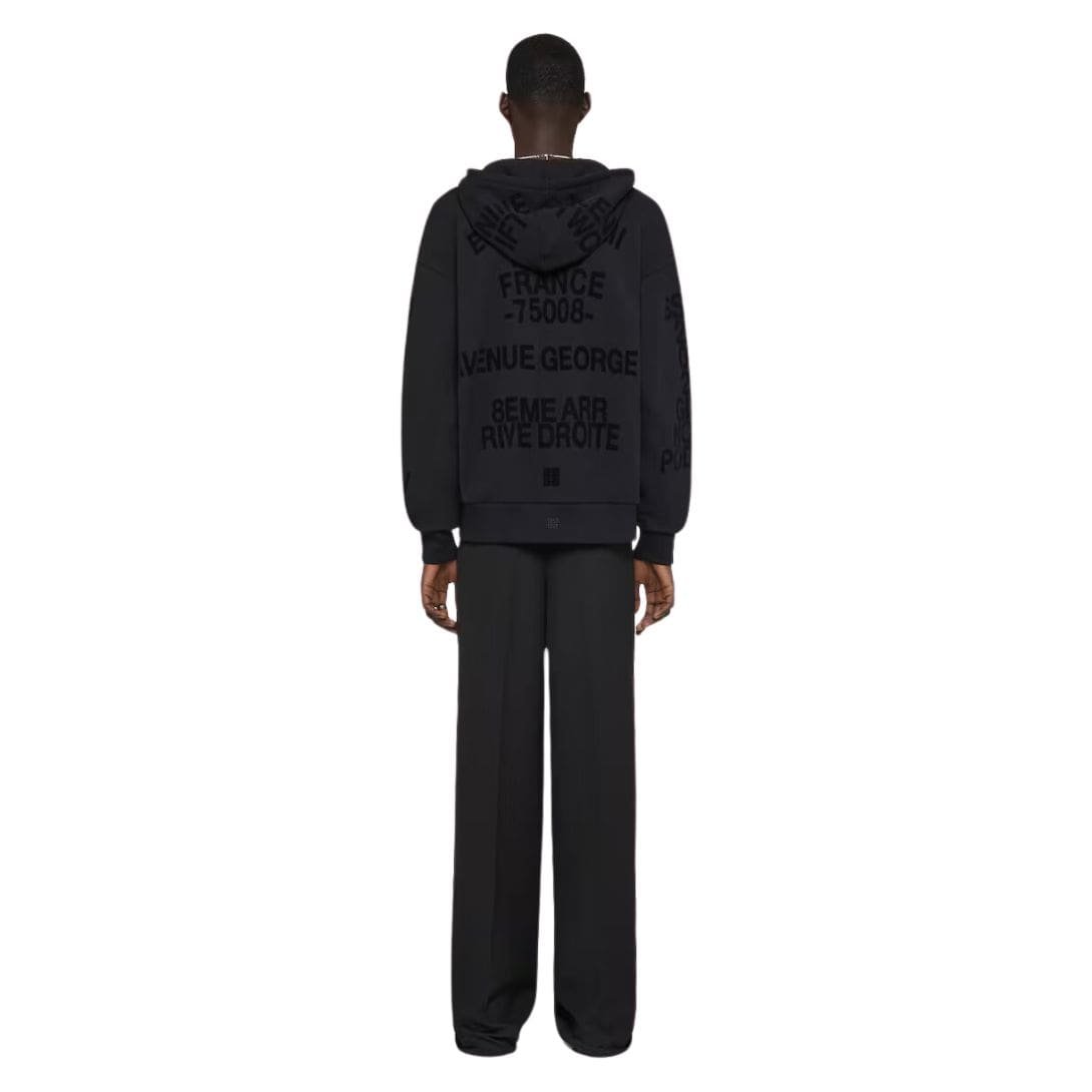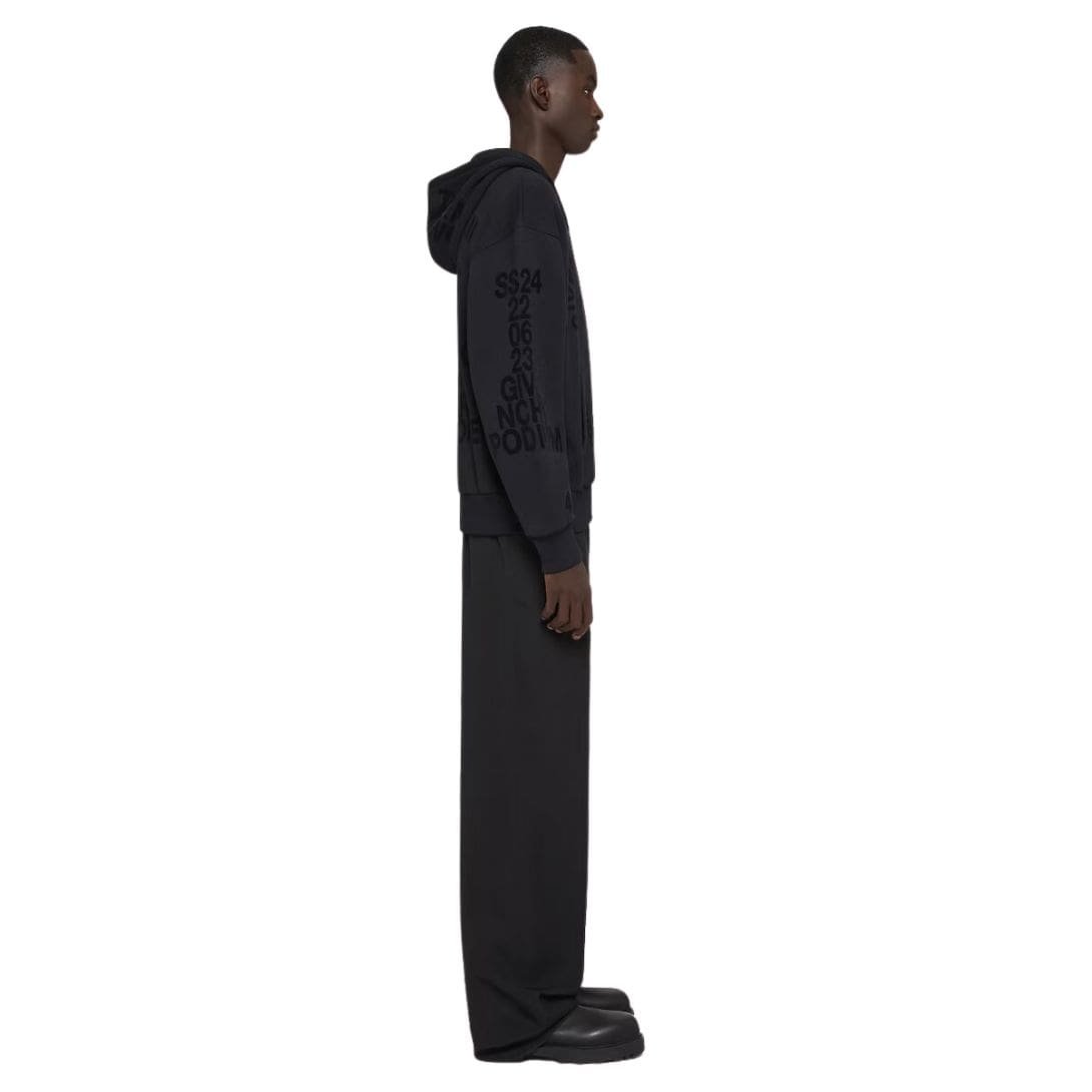 The design of the hoodie features a sleek, modern silhouette with a full zip closure that extends to a high, adjustable hood. The hood is lined with the same soft fleece, providing extra warmth and protection from the elements. Its minimalistic yet elegant design is punctuated by the iconic Givenchy logo, subtly embossed on the chest or included as a discreet embroidered detail, affirming the hoodie’s high-end status without overwhelming the overall aesthetic.