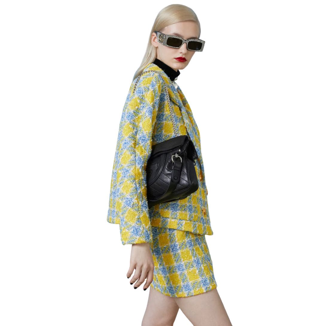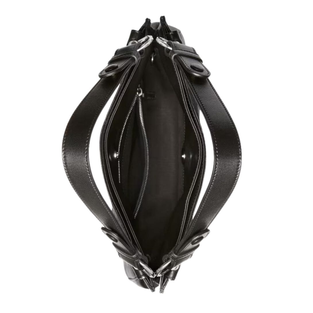 The bag features dual top handles, allowing for a comfortable carry in hand or on the forearm. For added convenience, it includes a detachable shoulder strap, giving you the option to wear it crossbody or over the shoulder, catering to various style preferences and occasions.