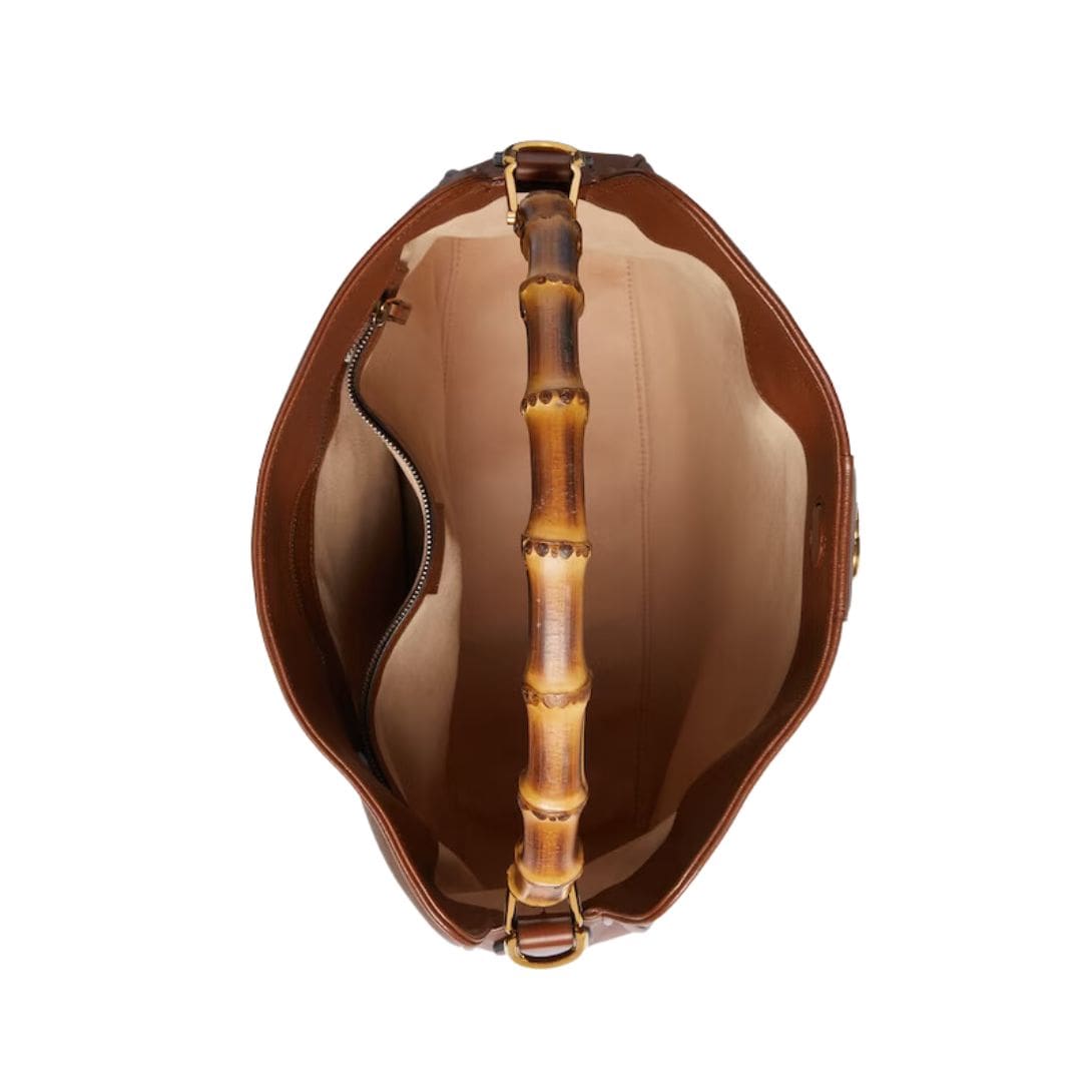 The bag’s standout feature is its iconic bamboo handles, which add a touch of classic Gucci flair and a nod to the brand’s innovative spirit. These handles, crafted from carefully polished bamboo, are both durable and stylish, providing a comfortable grip for effortless carrying. Additionally, the bag includes a detachable shoulder strap, allowing for hands-free convenience and versatility in styling.