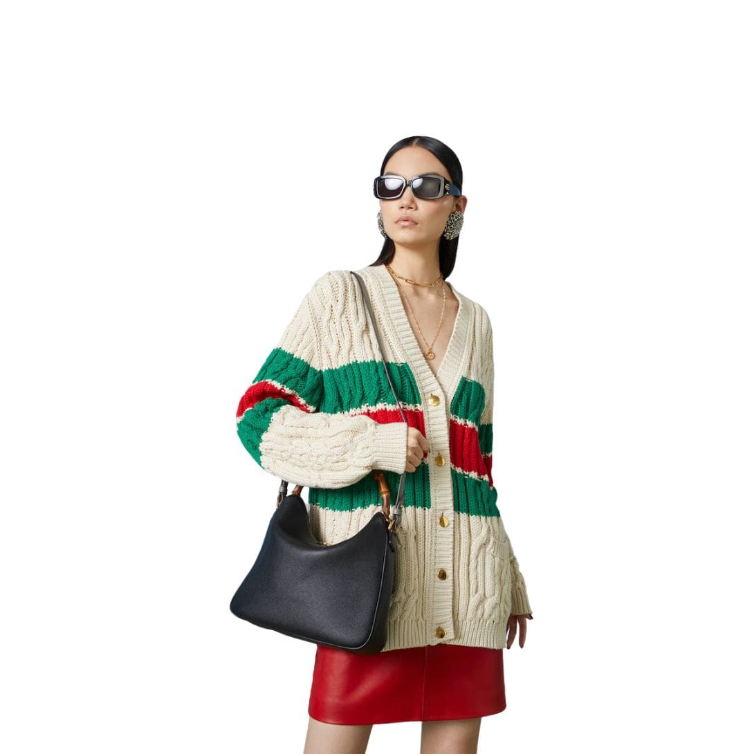 The Diana bag is rendered in rich, supple leather, available in a variety of classic hues and contemporary shades, each meticulously selected to complement its design. The bag’s structure is defined by its clean lines and gently rounded edges, which lend it a refined, understated charm. A standout feature is its iconic bamboo handle, a nod to Gucci’s heritage, which adds a touch of vintage allure and artisanal craftsmanship. GUCCI DIANA MEDIUM SHOULDER BAG