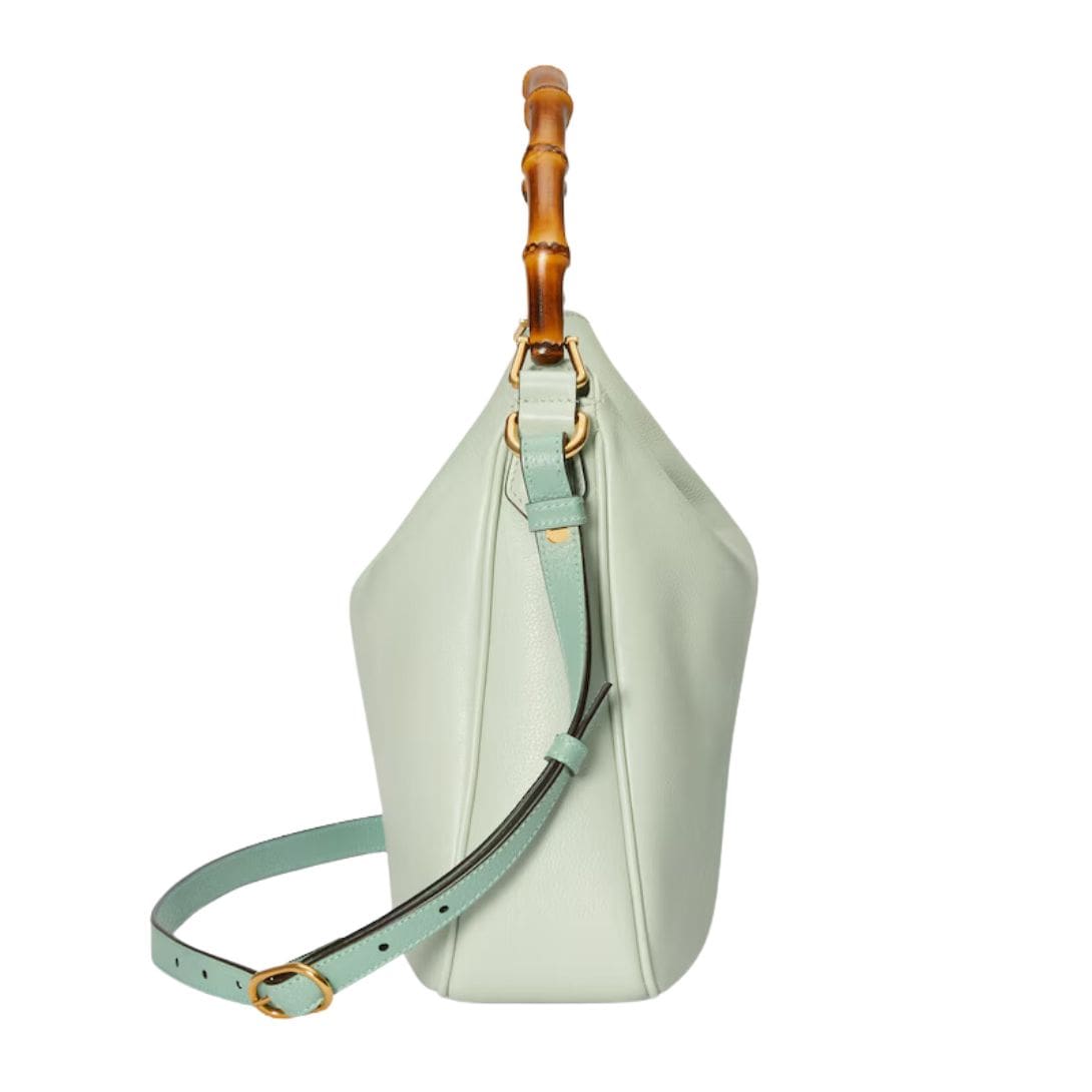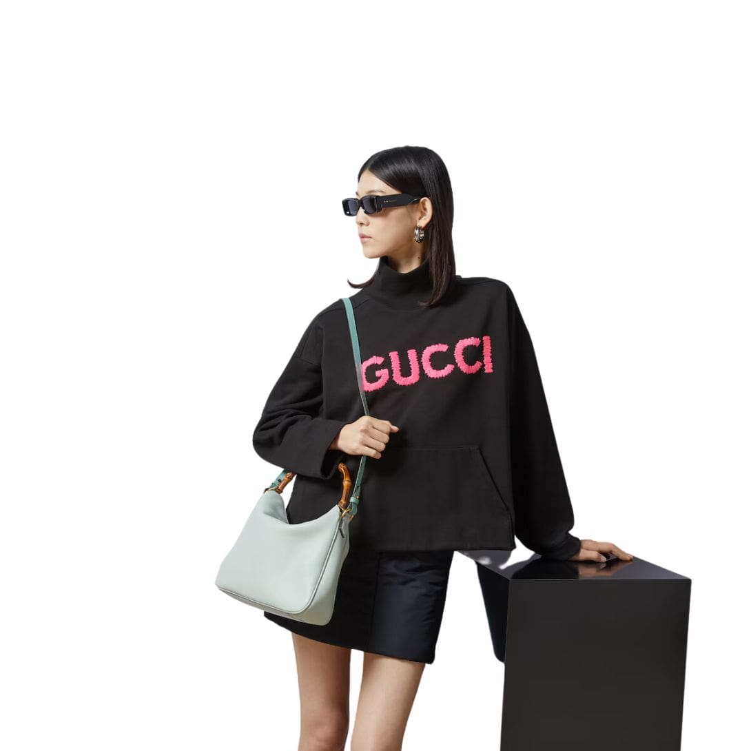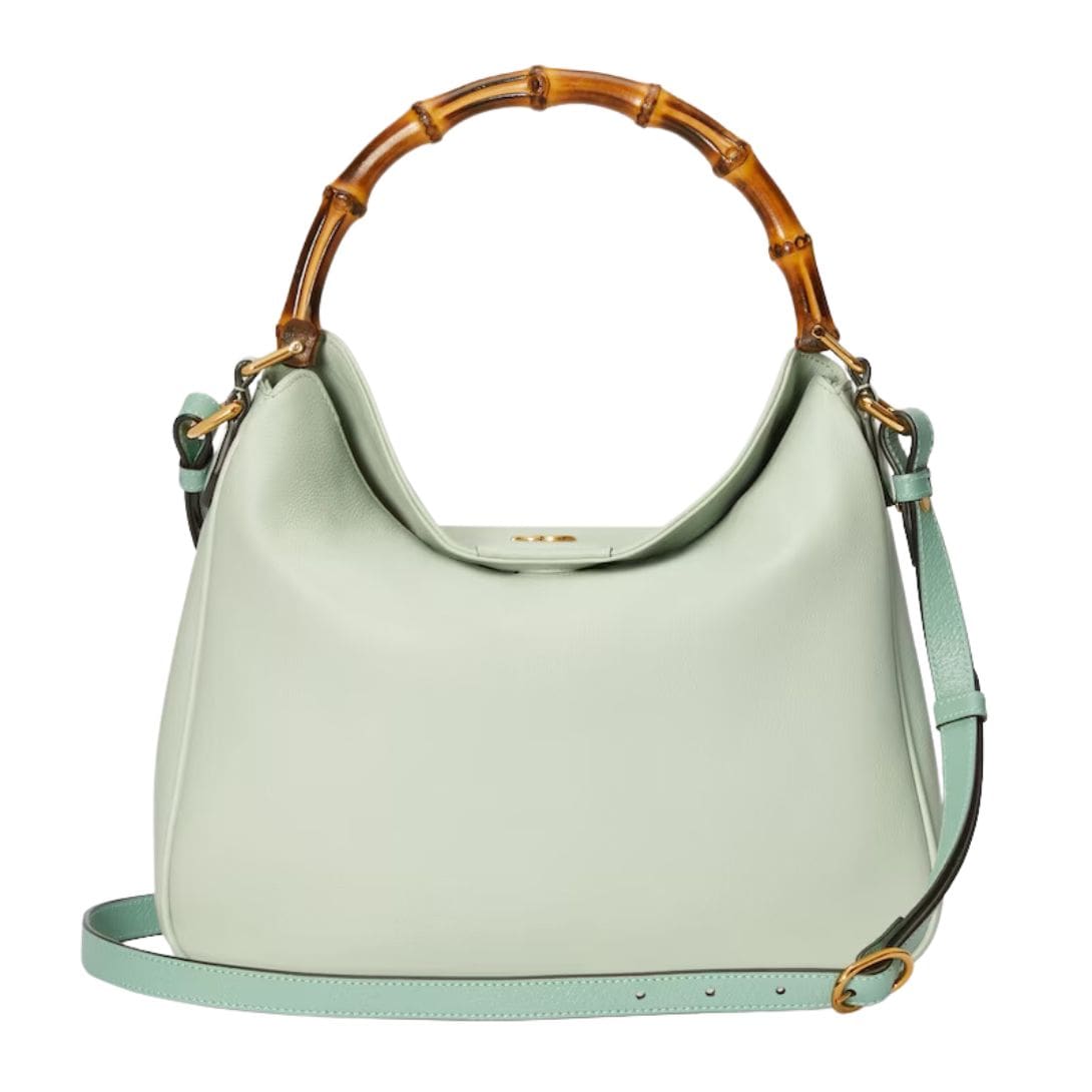 The Diana bag is rendered in rich, supple leather, available in a variety of classic hues and contemporary shades, each meticulously selected to complement its design. The bag’s structure is defined by its clean lines and gently rounded edges, which lend it a refined, understated charm. A standout feature is its iconic bamboo handle, a nod to Gucci’s heritage, which adds a touch of vintage allure and artisanal craftsmanship. GUCCI DIANA MEDIUM SHOULDER BAG