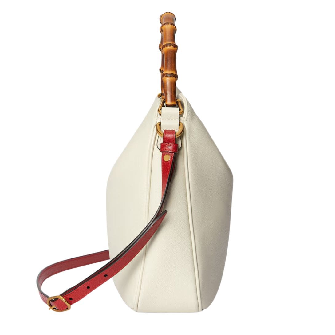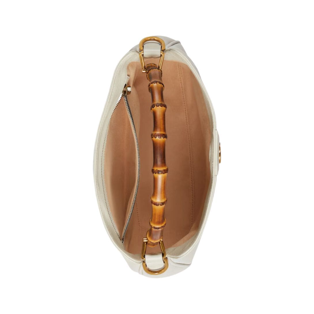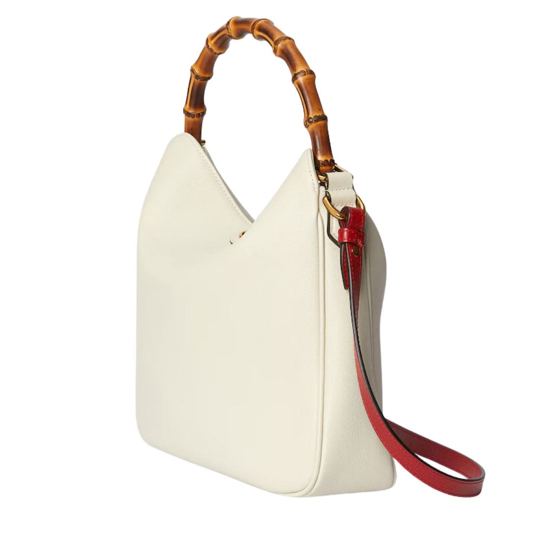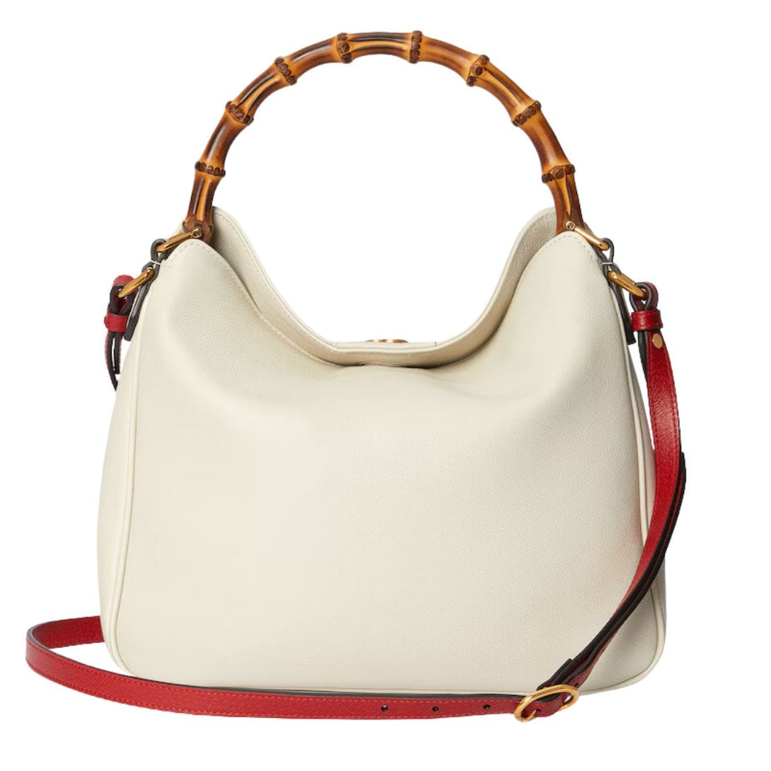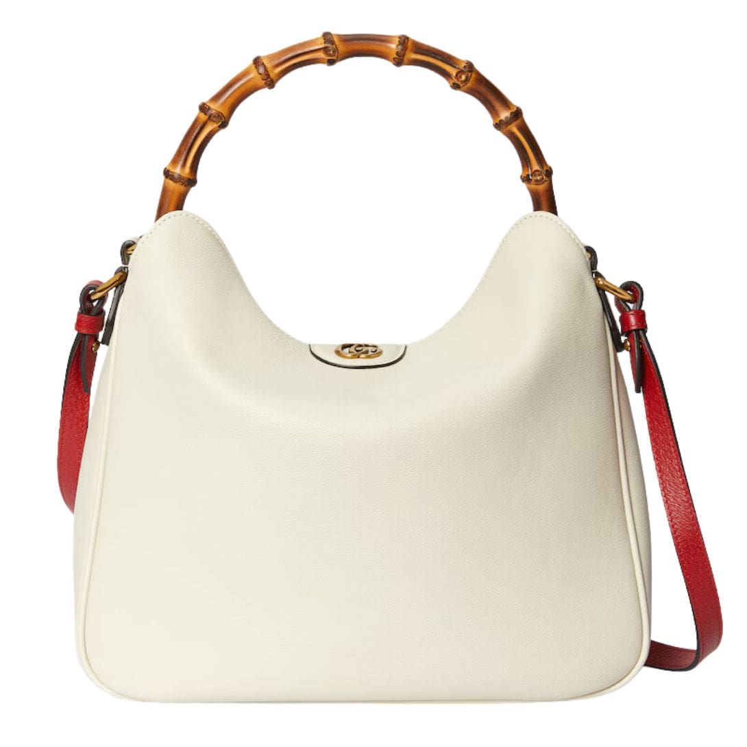 The Diana bag is rendered in rich, supple leather, available in a variety of classic hues and contemporary shades, each meticulously selected to complement its design. The bag’s structure is defined by its clean lines and gently rounded edges, which lend it a refined, understated charm. A standout feature is its iconic bamboo handle, a nod to Gucci’s heritage, which adds a touch of vintage allure and artisanal craftsmanship. GUCCI DIANA MEDIUM SHOULDER BAG