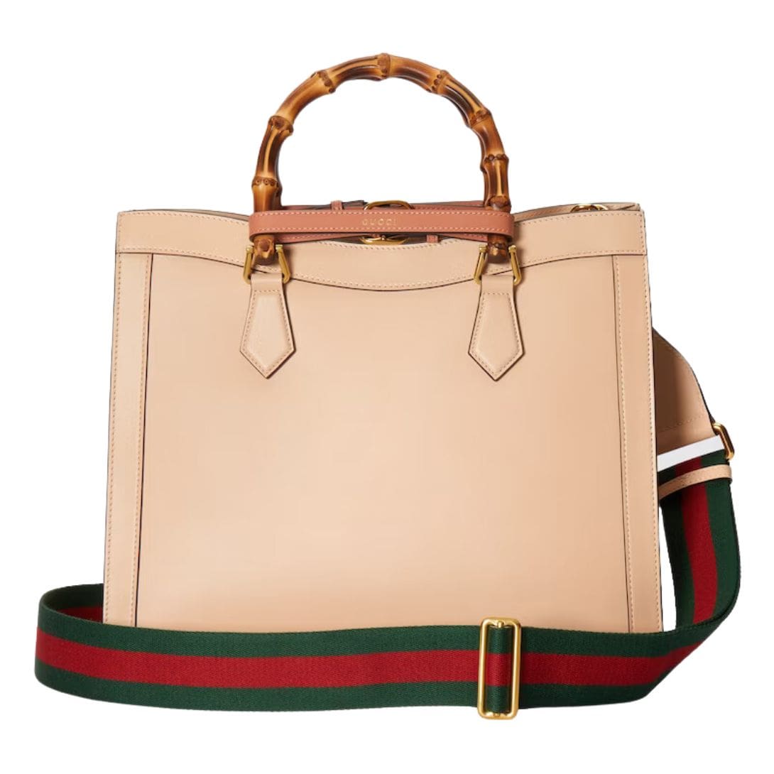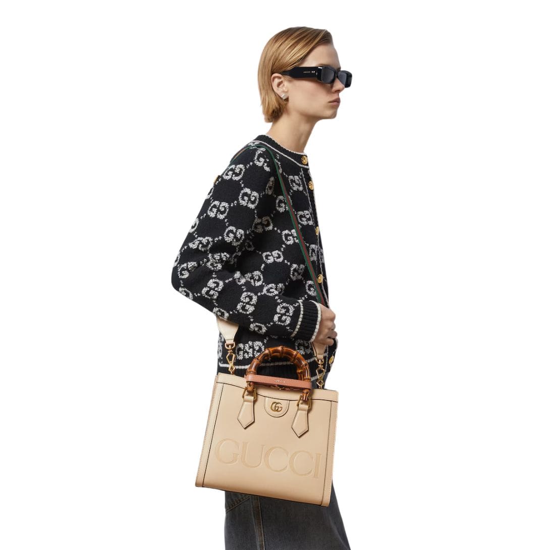 One of the standout features of the Gucci Diana Medium Tote Bag is its bamboo handles. These handles are a signature element of Gucci’s design language, paying homage to the brand’s storied past while adding a unique and recognizable touch. The bamboo is meticulously treated and crafted, offering a comfortable grip and a distinctive aesthetic appeal. GUCCI DIANA MEDIUM TOTE BAG