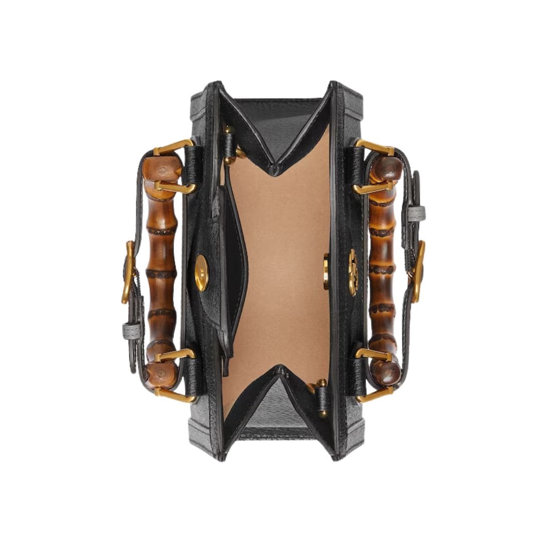 Crafted from high-quality leather, the mini tote exudes sophistication with its sleek design and meticulous attention to detail. The leather is smooth and supple, offering a luxurious feel while ensuring durability. One of the most distinctive features of the Gucci Diana Mini Tote Bag is its bamboo top handles. These iconic handles harken back to the original Gucci bamboo bag introduced in 1947, adding a touch of vintage elegance to the modern silhouette. The bamboo is carefully treated and polished, providing a comfortable grip and a unique aesthetic appeal.