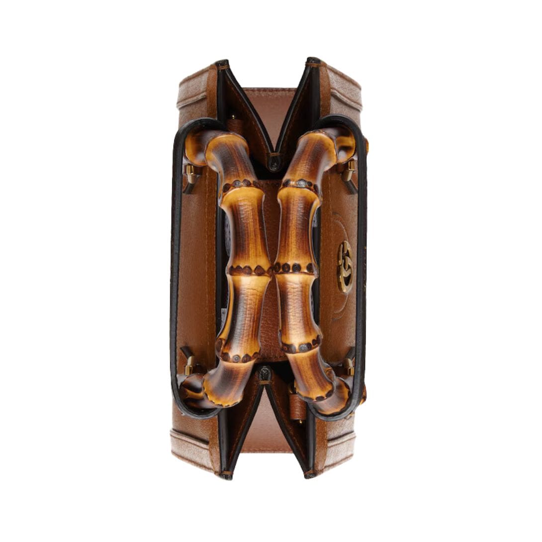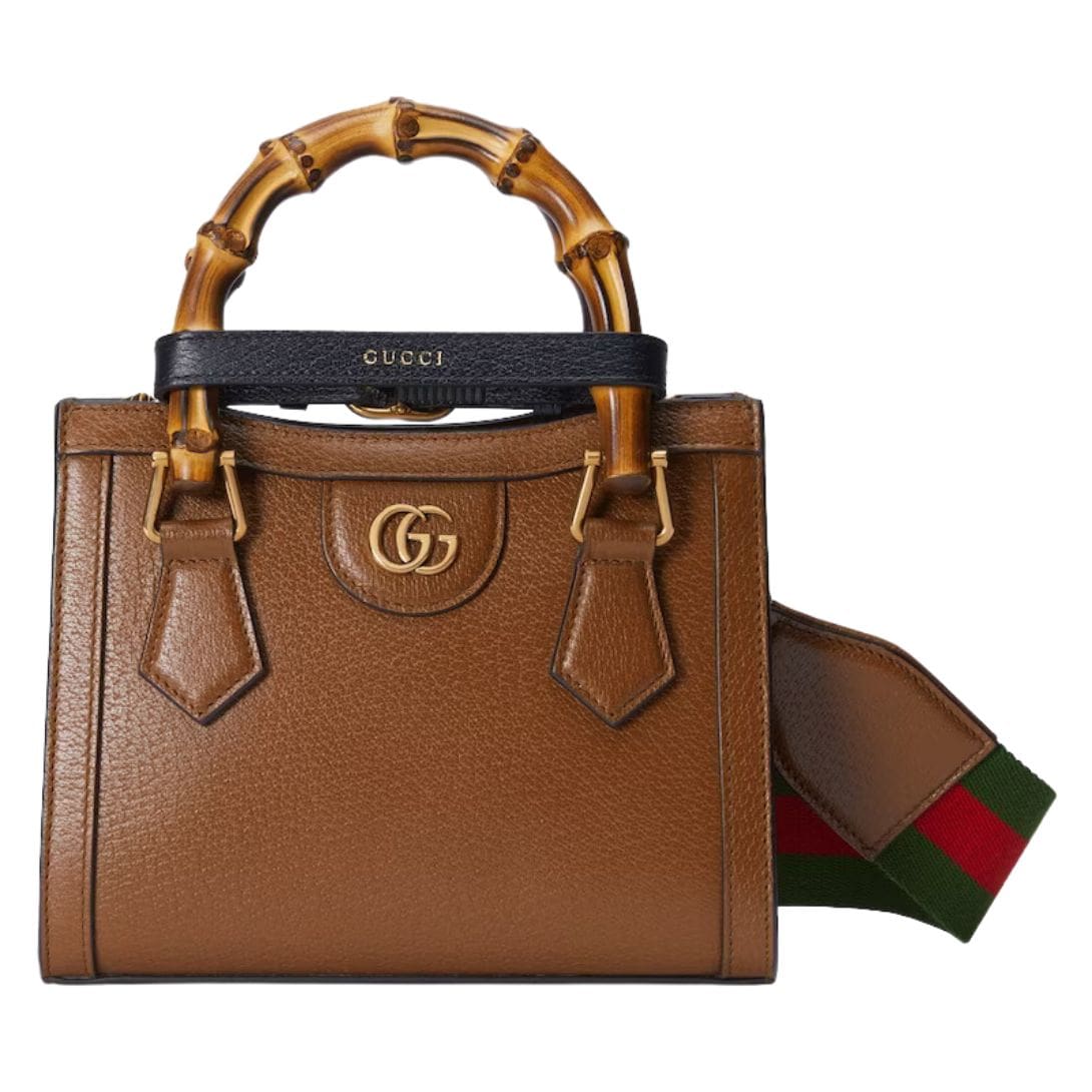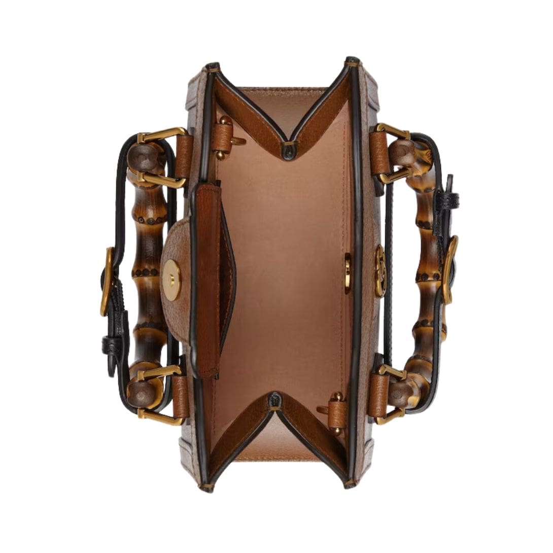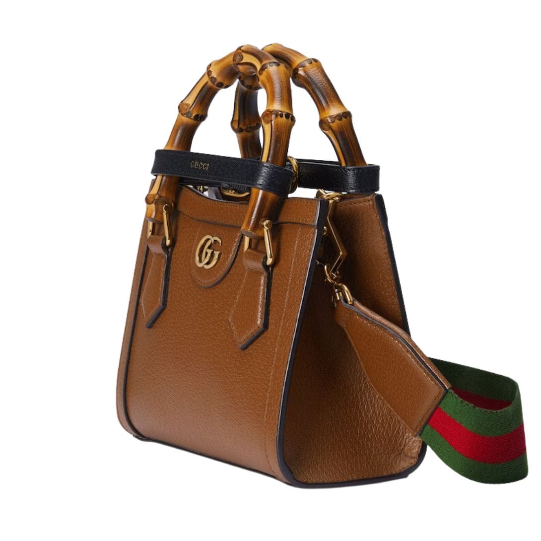 Crafted from high-quality leather, the mini tote exudes sophistication with its sleek design and meticulous attention to detail. The leather is smooth and supple, offering a luxurious feel while ensuring durability. One of the most distinctive features of the Gucci Diana Mini Tote Bag is its bamboo top handles. These iconic handles harken back to the original Gucci bamboo bag introduced in 1947, adding a touch of vintage elegance to the modern silhouette. The bamboo is carefully treated and polished, providing a comfortable grip and a unique aesthetic appeal.