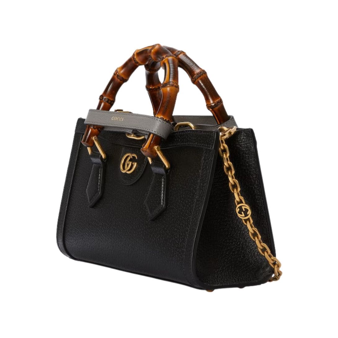 One of the standout features of the Gucci Diana bag is its bamboo handles, a signature element that has been part of Gucci’s design heritage since the 1940s. These curved handles are meticulously crafted and polished, providing a unique and stylish contrast to the leather body. In addition to the bamboo handles, the bag includes a detachable shoulder strap, allowing for multiple carrying options and adding to its practicality. GUCCI DIANA SMALL SHOULDER BAG