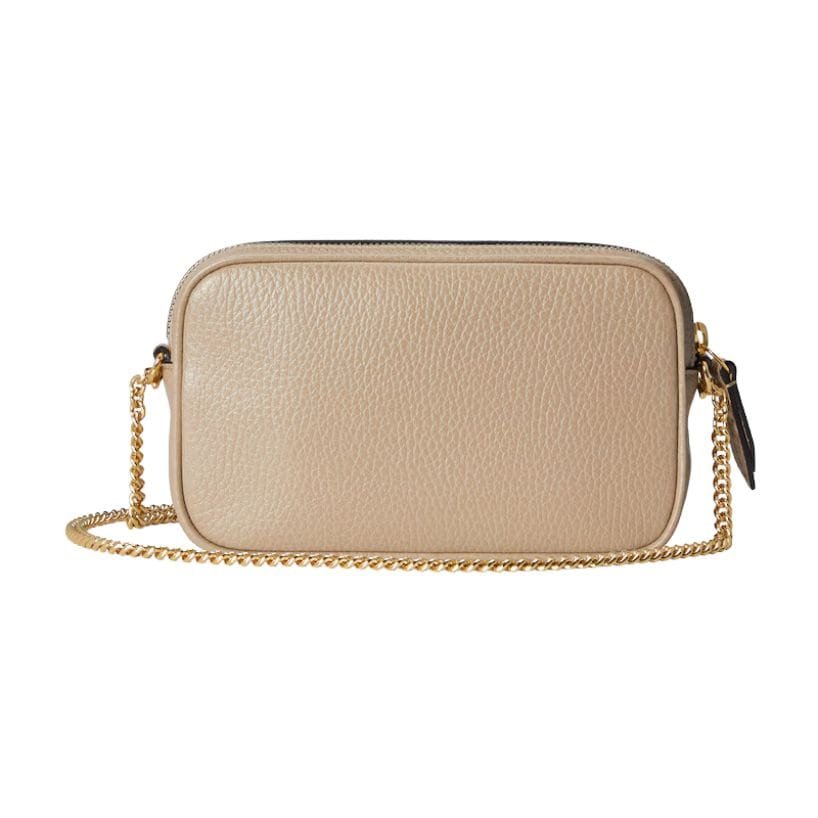 A defining feature of the GG Marmont Super Mini is the antique gold-toned hardware, particularly the iconic GG logo on the front flap. This emblematic detail is a nod to Gucci’s rich heritage and adds a touch of vintage glamour to the design. The chain shoulder strap, also in antique gold, complements the hardware and allows for versatile styling options. It can be worn as a crossbody, over the shoulder, or even used as a clutch by tucking the chain inside.