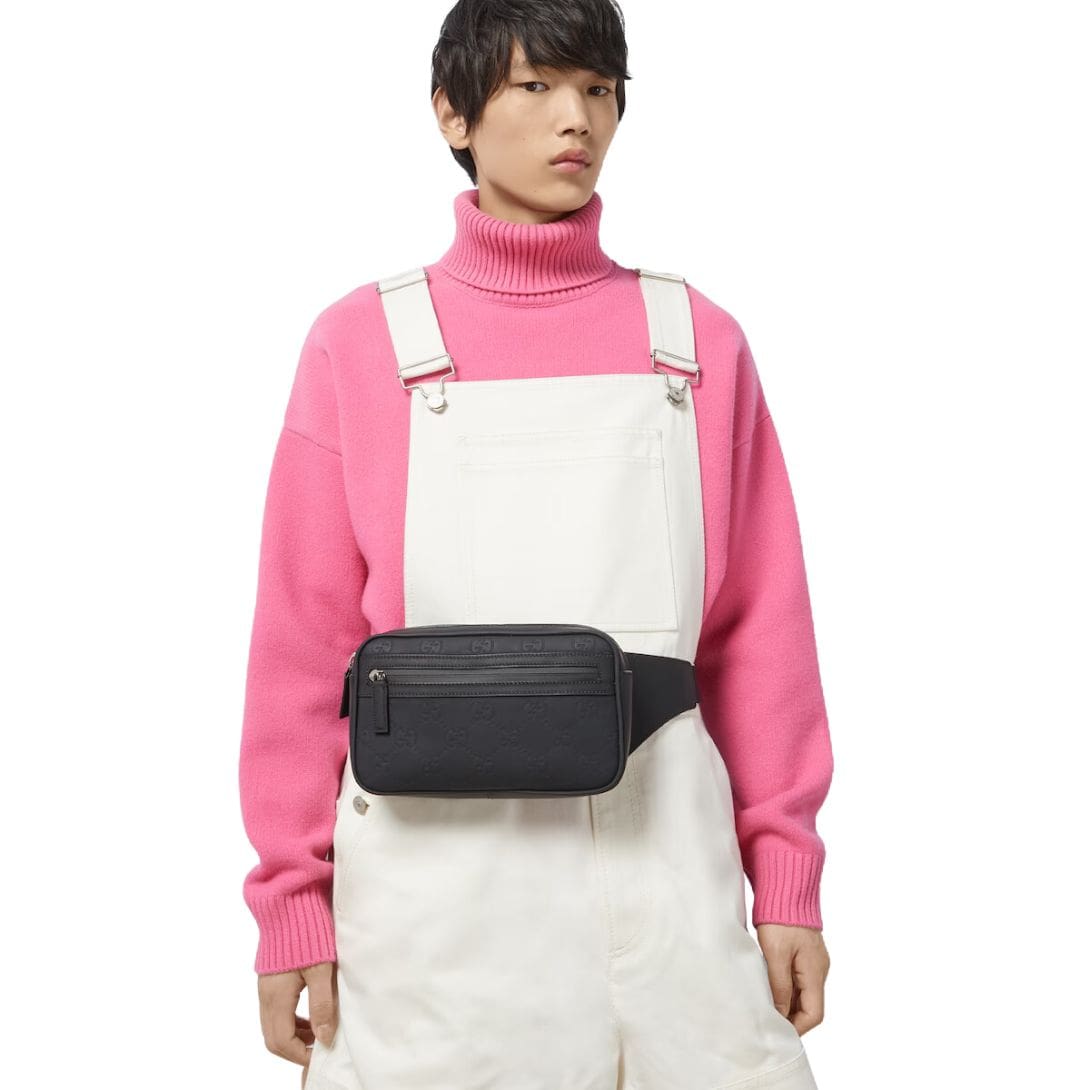 Whether paired with a casual ensemble or used to elevate a more polished look, the Gucci GG Rubber-Effect Belt Bag in Black is a testament to Gucci’s ability to blend innovative design with classic luxury. It’s a statement accessory that embodies both practicality and high-fashion sophistication. GUCCI GG RUBBER-EFFECT BELT BAG IN BLACK