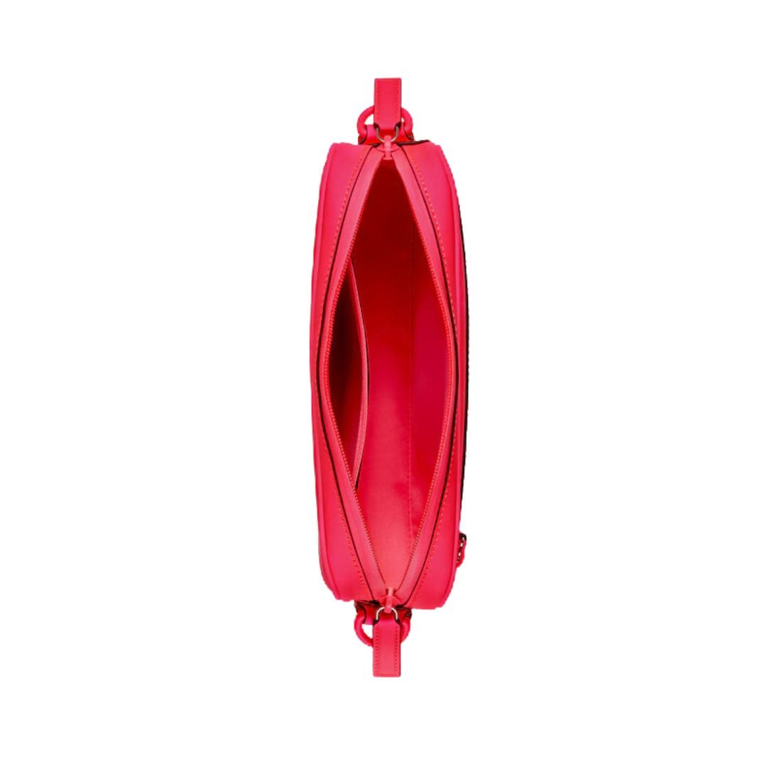 The bag features a compact yet practical design, making it ideal for carrying your essentials. The main compartment is spacious enough to hold your phone, wallet, keys, and a few small personal items. It closes securely with a top zip closure, keeping your belongings safe and easily accessible. Inside, the bag is lined with soft, luxurious fabric, adding an extra layer of elegance and protection for your items. GUCCI GG RUBBER EFFECT CROSSBODY BAG IN PINK
