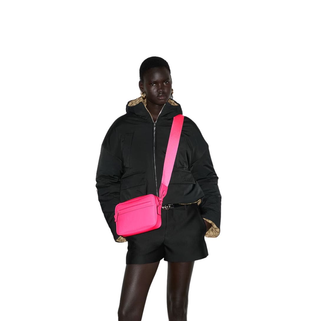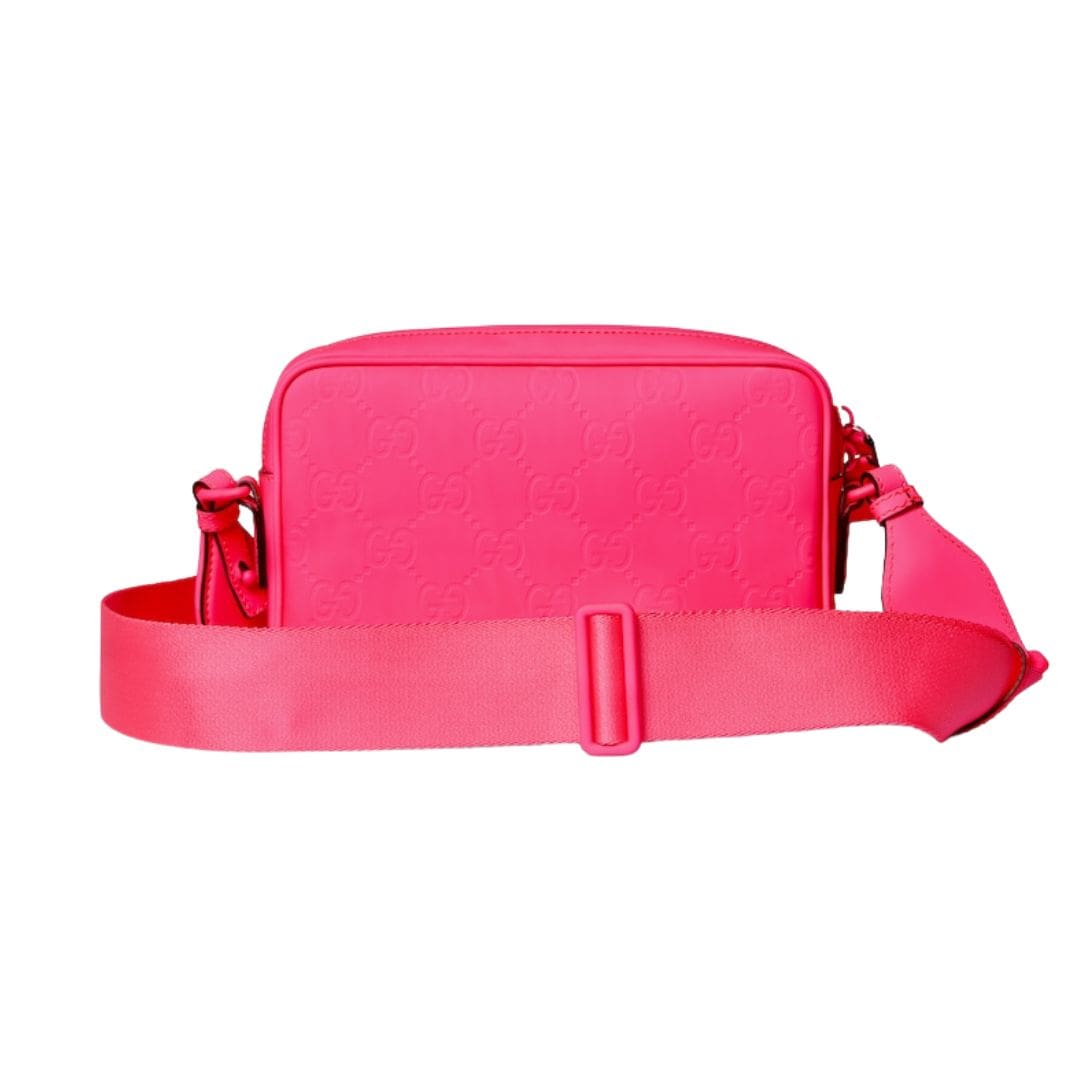Crafted from high-quality rubber with a distinctive GG motif embossed throughout, this crossbody bag offers a playful yet sophisticated look. The vibrant pink color adds a bold, trendy touch, making it an eye-catching piece that stands out in any ensemble. The rubber material not only provides a unique texture but also ensures durability and resistance to everyday wear and tear.