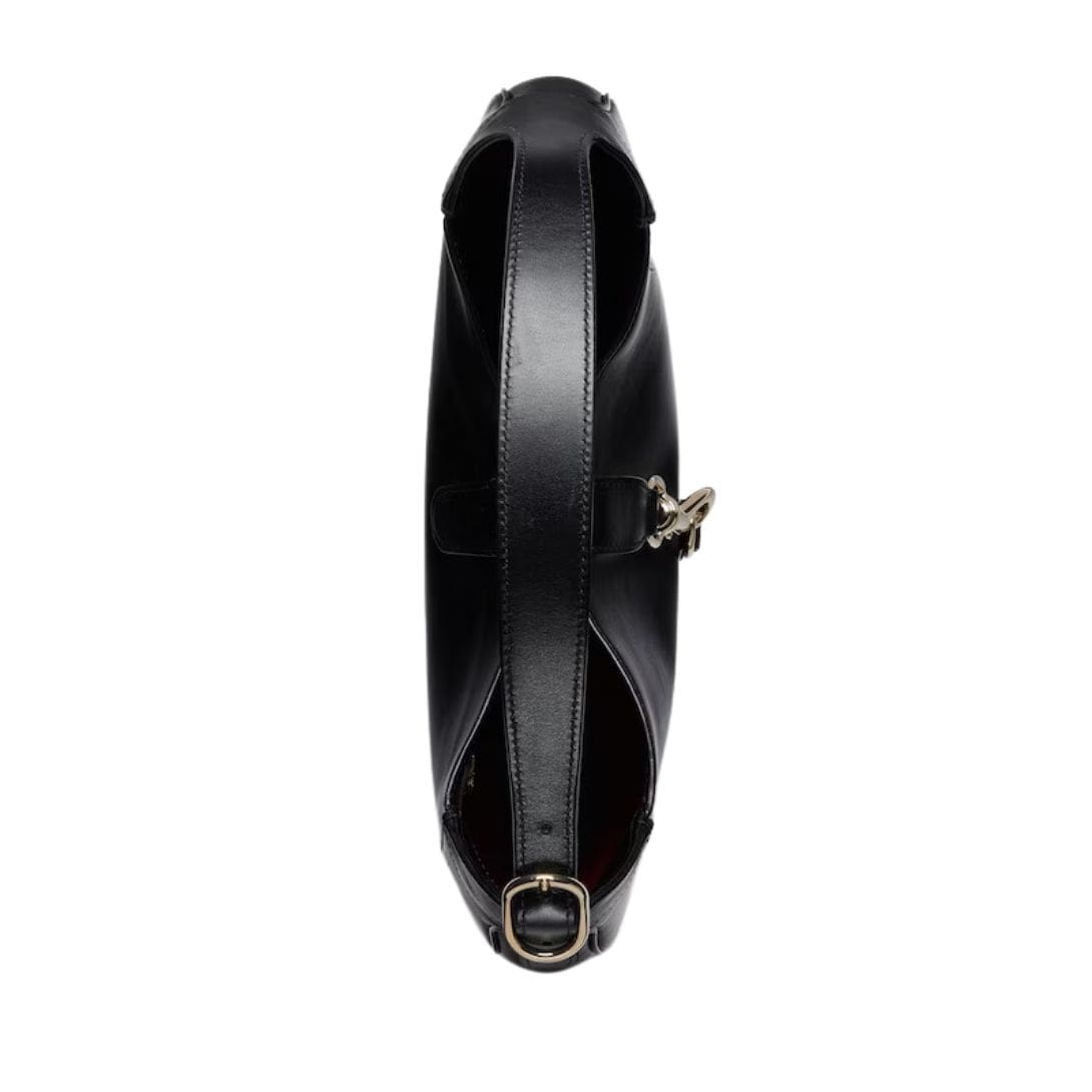 The interior of the Jackie Medium Shoulder Bag is as thoughtfully designed as its exterior. Lined with a sumptuous suede-like fabric, it features a spacious main compartment along with multiple pockets, providing ample storage for essentials while maintaining a sleek profile. The bag’s versatility is further accentuated by its adjustable shoulder strap, allowing it to be worn comfortably over the shoulder or as a crossbody, adapting to the wearer’s style and preference.