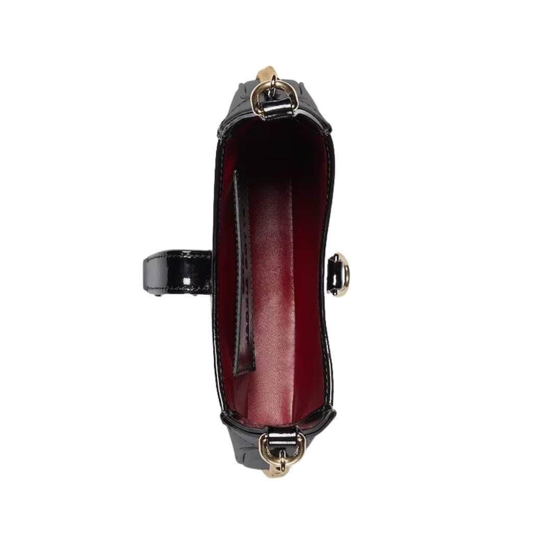 Inside, the bag features a well-organized interior with a single main compartment and a slip pocket, providing ample space for your phone, keys, wallet, and a few small personal items. The interior is lined with a luxurious microfiber fabric that mimics the feel of suede, adding an extra layer of elegance to the bag’s design. GUCCI JACKIE NOTTE MINI BAG