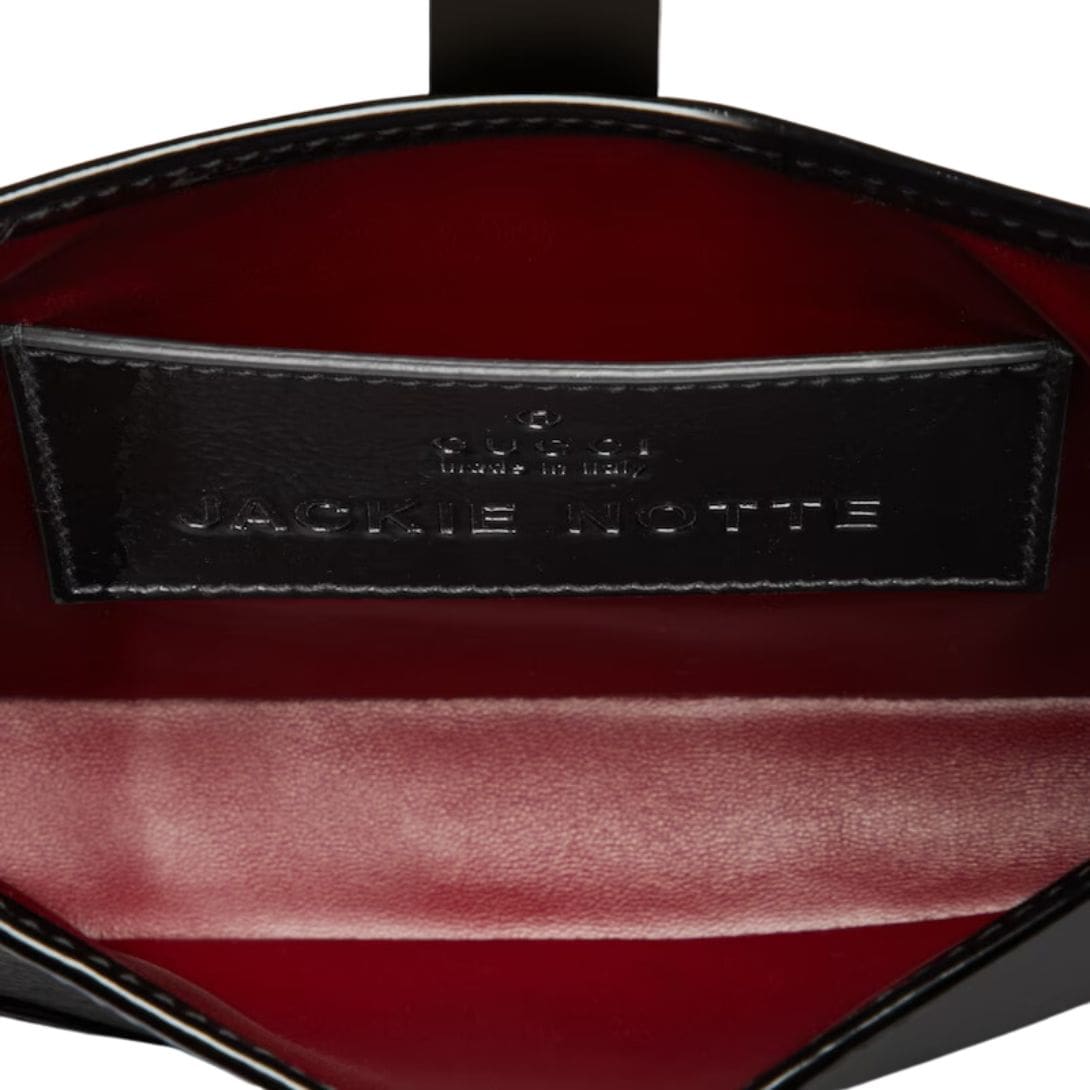 Crafted from high-quality black leather, the Jackie Notte Mini Bag exudes luxury and durability. The smooth, supple leather is accented with minimalistic yet striking gold-tone hardware, including the signature piston closure that has become synonymous with the Jackie line. This distinctive clasp not only secures the bag but also adds a touch of vintage glamour to the overall design. GUCCI JACKIE NOTTE MINI BAG