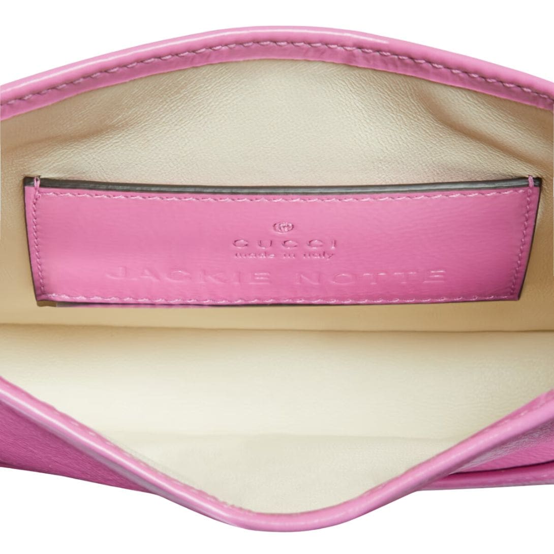 Inside, the bag features a well-organized interior with a single main compartment and a slip pocket, providing ample space for your phone, keys, wallet, and a few small personal items. The interior is lined with a luxurious microfiber fabric that mimics the feel of suede, adding an extra layer of elegance to the bag’s design. GUCCI JACKIE NOTTE MINI BAG