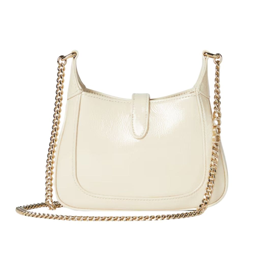 Inside, the bag features a well-organized interior with a single main compartment and a slip pocket, providing ample space for your phone, keys, wallet, and a few small personal items. The interior is lined with a luxurious microfiber fabric that mimics the feel of suede, adding an extra layer of elegance to the bag’s design. GUCCI JACKIE NOTTE MINI BAG