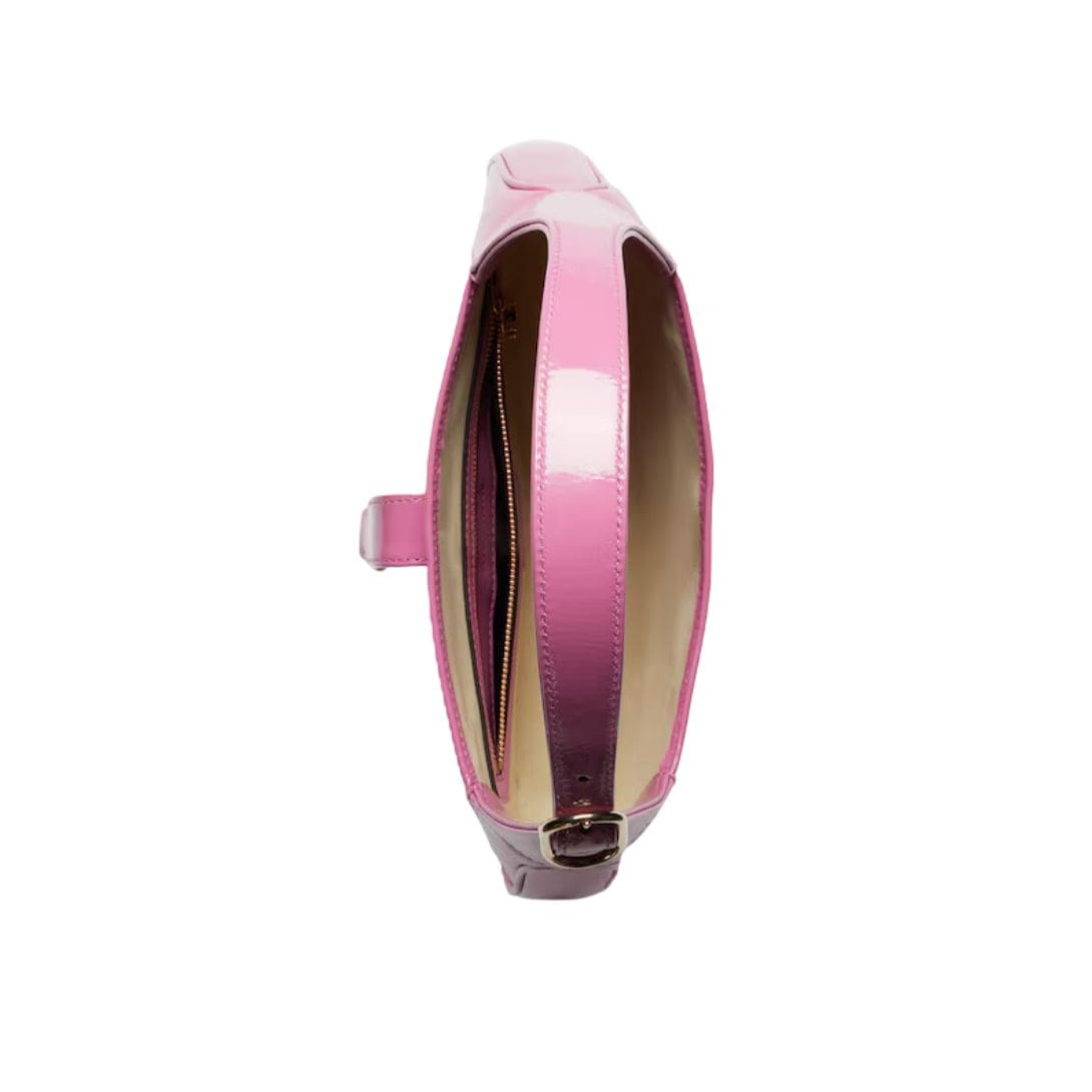 The bag’s silhouette is elegantly curved, offering a sophisticated and streamlined look. Its compact size makes it an ideal choice for both day and evening wear, providing versatility and practicality without compromising on style. The adjustable shoulder strap allows for comfortable wear, whether slung casually over the shoulder or carried as a chic top-handle bag.
