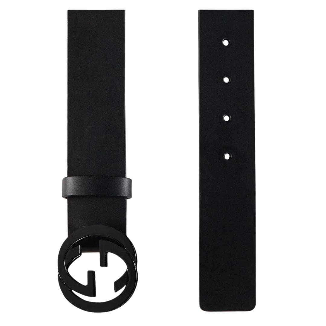 Embrace sophistication Gucci Leather Belt With Interlocking G featuring a distinctive interlocking G detail, exuding elegance in matte black.