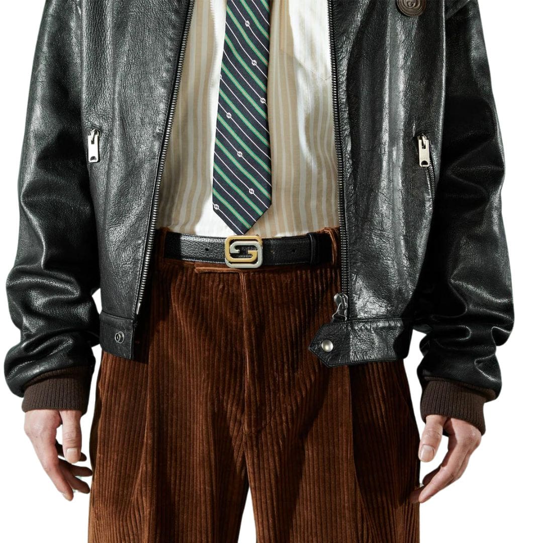 The focal point of the belt is the Square Interlocking G buckle, which combines palladium and gold-toned hardware for a striking contrast. This distinctive detail adds a touch of modernity to the belt while paying homage to Gucci’s rich heritage and legacy.
