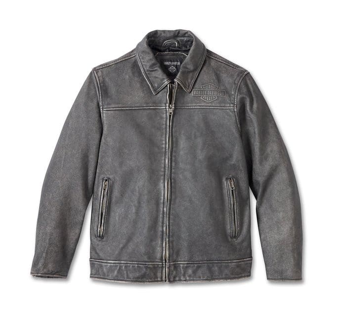 HARLEY DAVIDSON MENS GAS AND OIL LEATHER JACKET WASHED BLACK is a timeless embodiment of rugged style and unparalleled craftsmanship. This iconic piece seamlessly blends the rich heritage of Harley Davidson with contemporary design, making it a must-have for motorcycle enthusiasts and fashion aficionados alike.