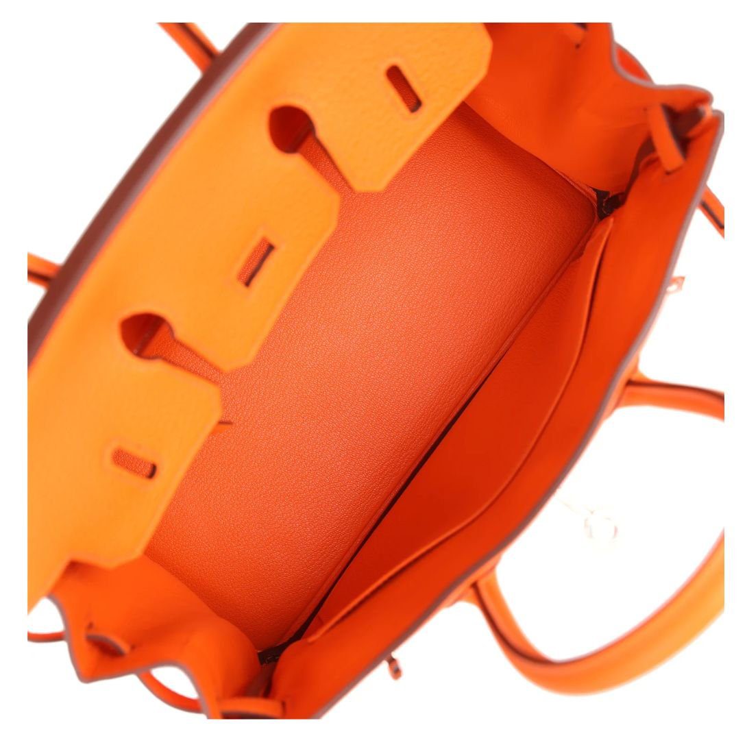 This Hermès Birkin in Orange Minium Togo leather is an iconic and vibrant piece, combining elegance with functionality in a luxurious design that is perfect for both day and night.