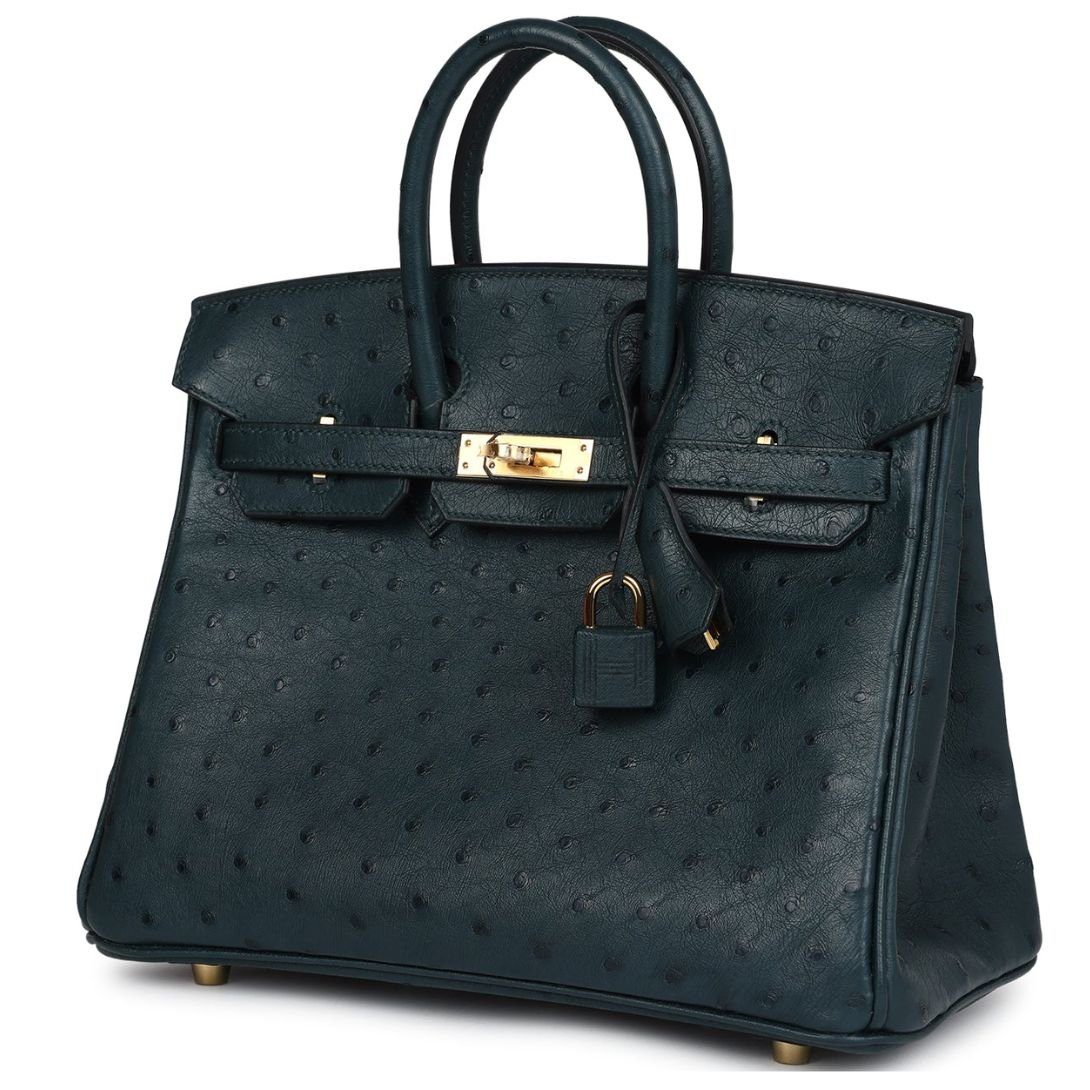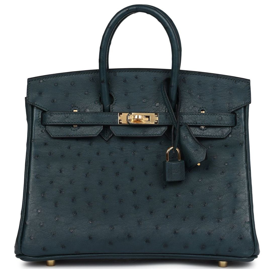 HERMÈS BIRKIN 25 VERT CYPRES OSTRICH GOLD HARDWARE