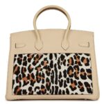 HERMÈS BIRKIN 35 PARCHEMIN TOGO AND LEOPARD TROIKA PALLADIUM HARDWARE