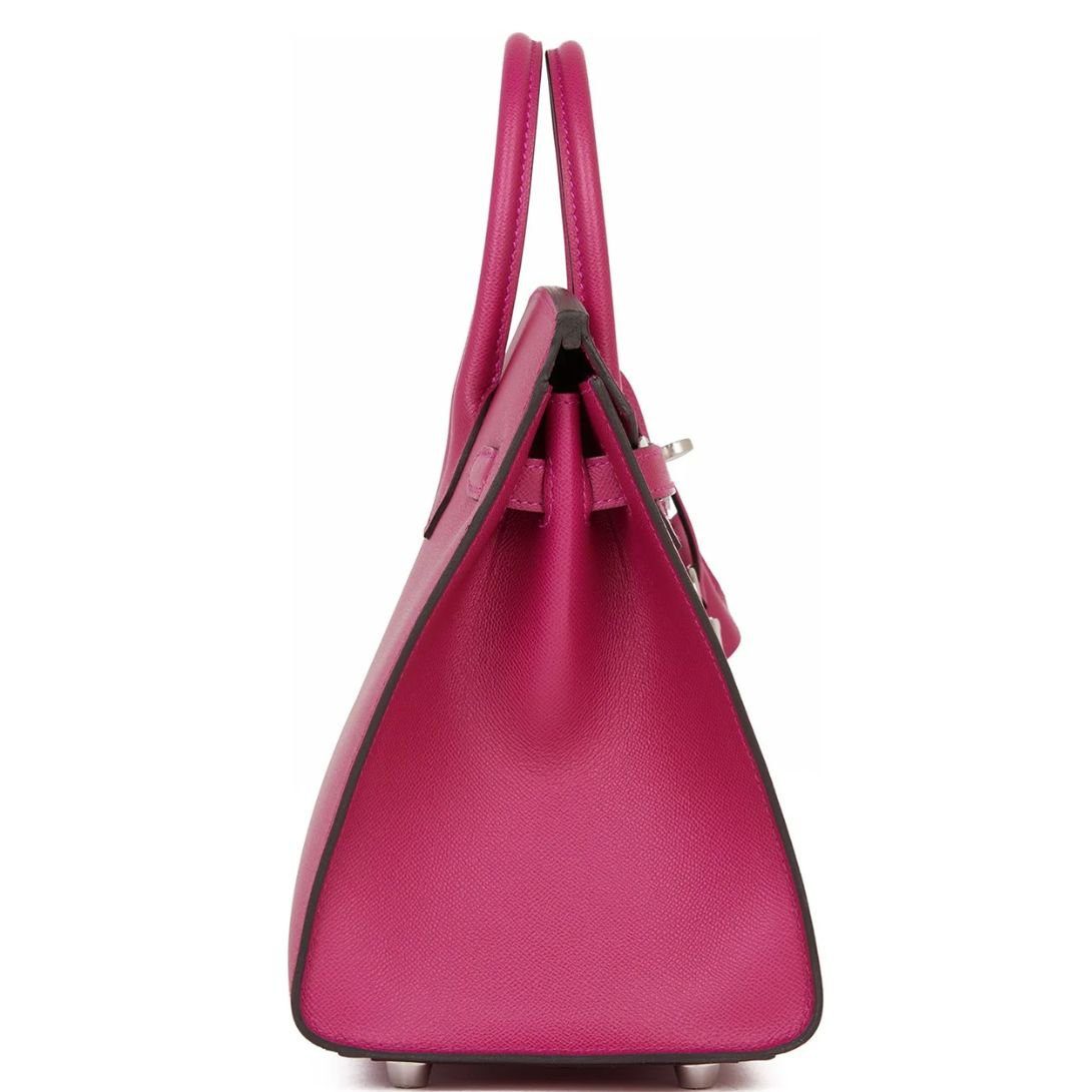 This Hermès Sellier Birkin in Rose Pourpre Veau Madame leather is a brand-new, luxurious piece that combines the iconic Birkin design with sophisticated craftsmanship, making it a standout addition to any collection.